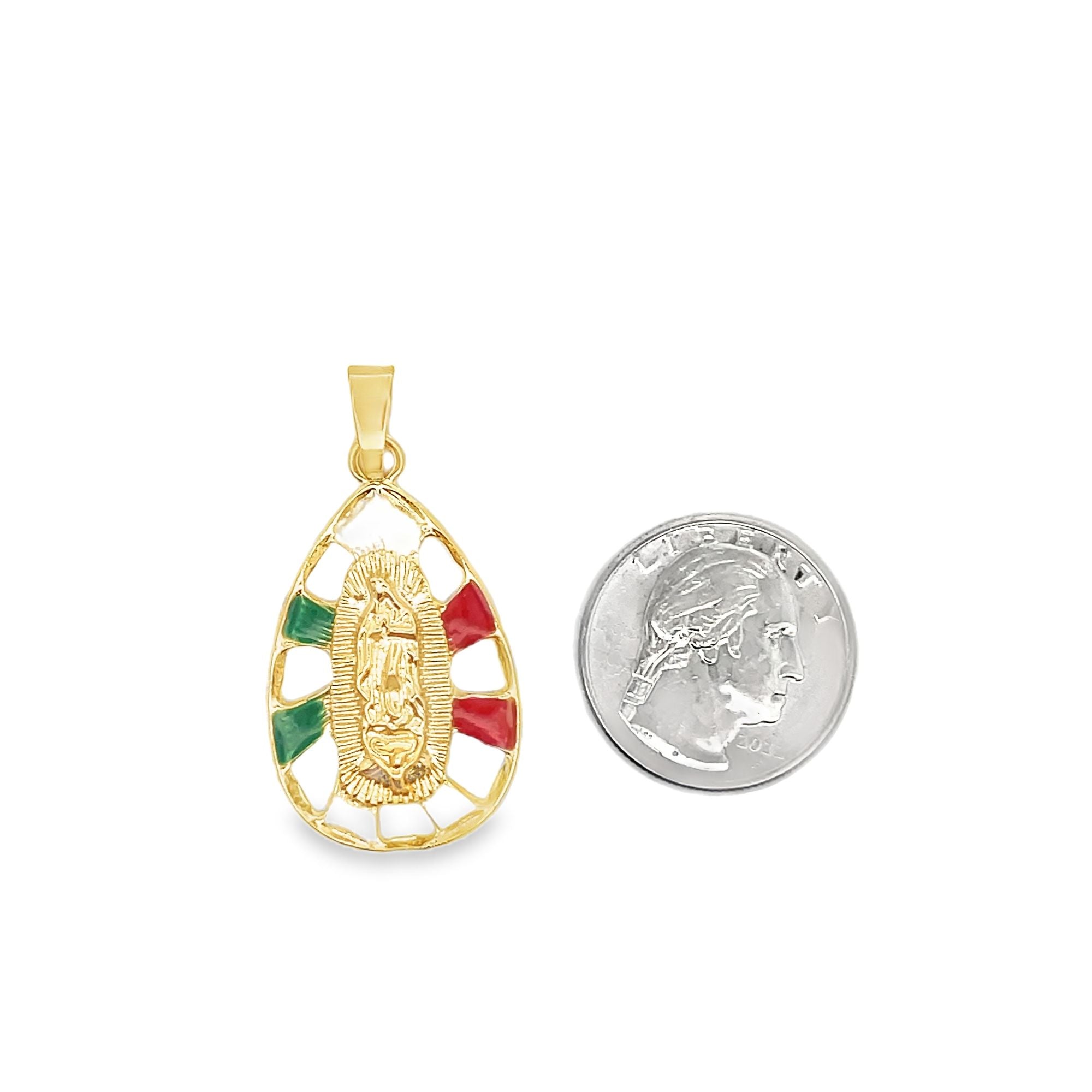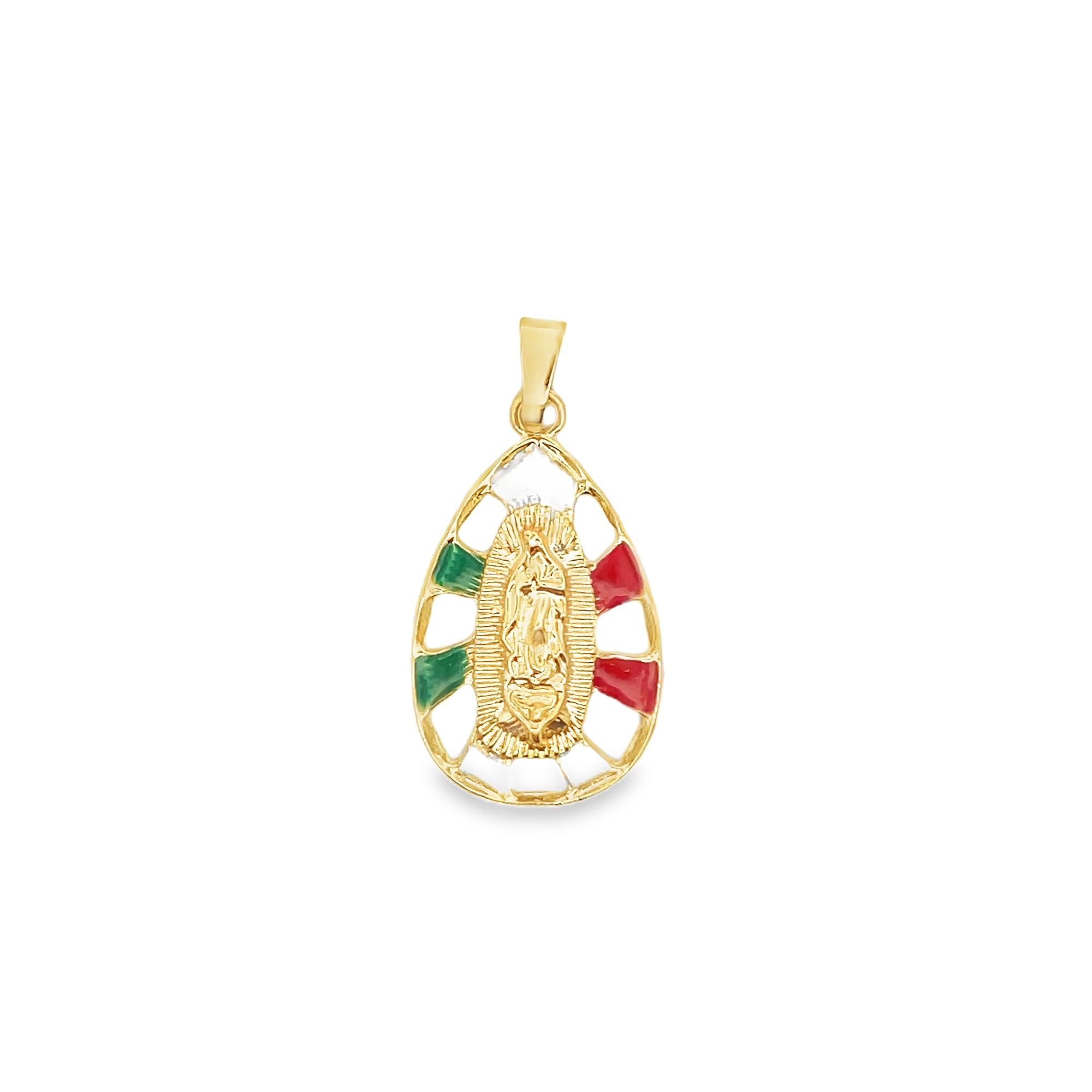 This elegant Virgin Mary pendant is crafted with 18K Gold Filled materials, measuring 22mm x 36mm. A beautiful addition to any jewelry collection, perfect for daily wear or special occasions. Enhance your style with this timeless gold piece.