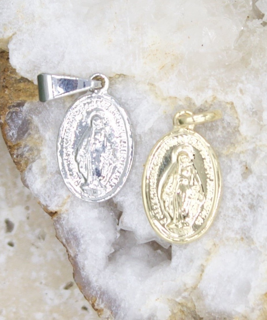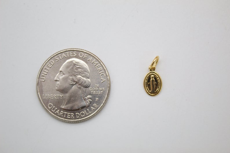 Discover our Tiny Gold Filled Miraculous Medal pendant, measuring 9mm x 5mm, a delicate symbol of faith. Made with high-quality gold-filled material, this pendant is perfect for resale, offering a charming touch to any jewelry collection.