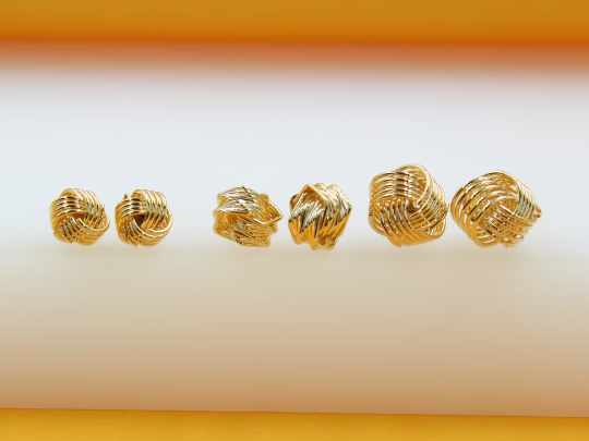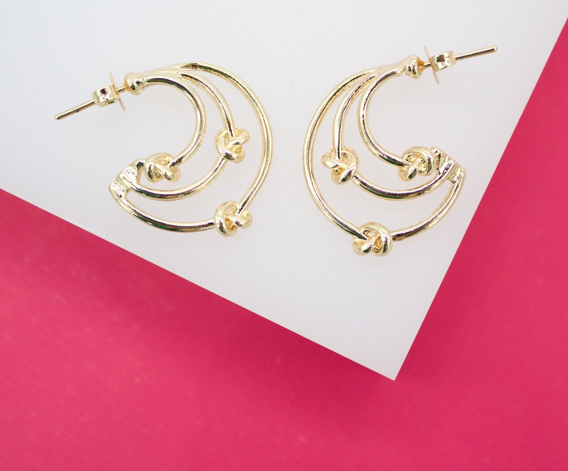 18K Gold Filled Knotted Open Hoop Stud Earrings (K64)