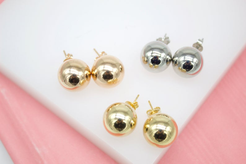 18K Gold Filled Large Ball Stud Earrings (L141)(L150)