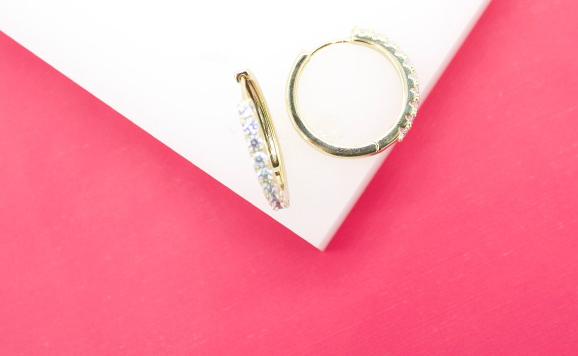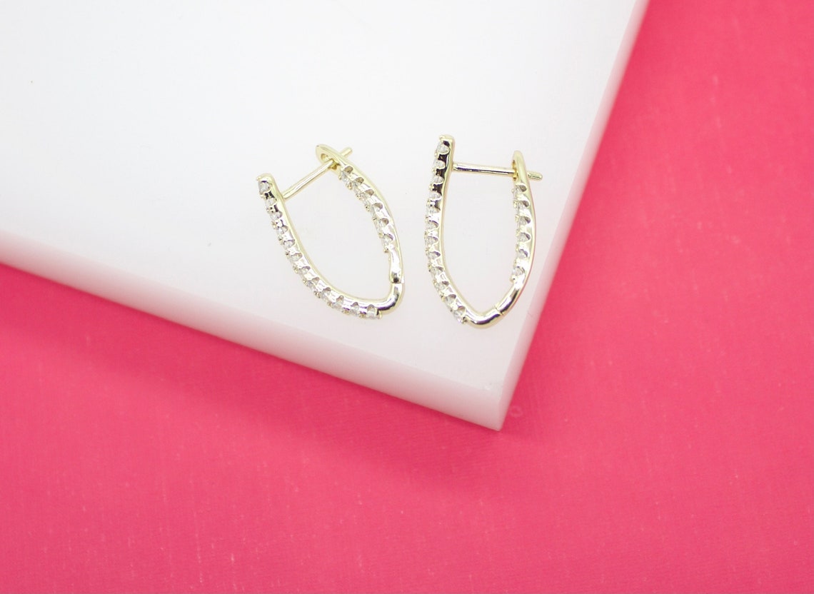 18K Gold Filled Large Slim Designed Slanted Huggies Pave Earrings (L200)