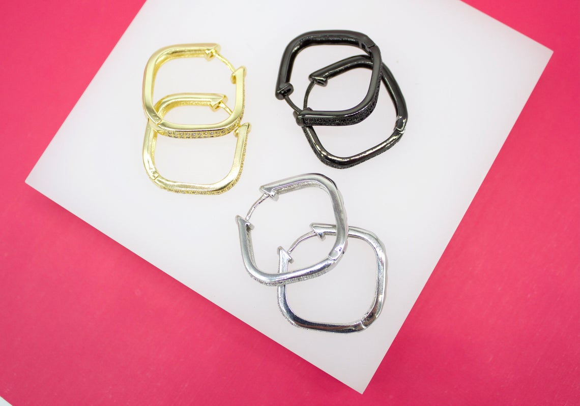 18K Gold Filled Large Squared Huggies Earrings With Micro CZ Cubic Zirconia