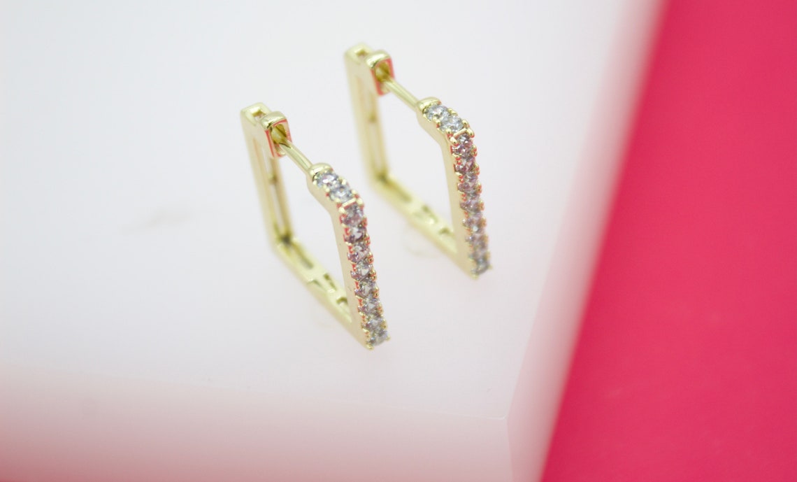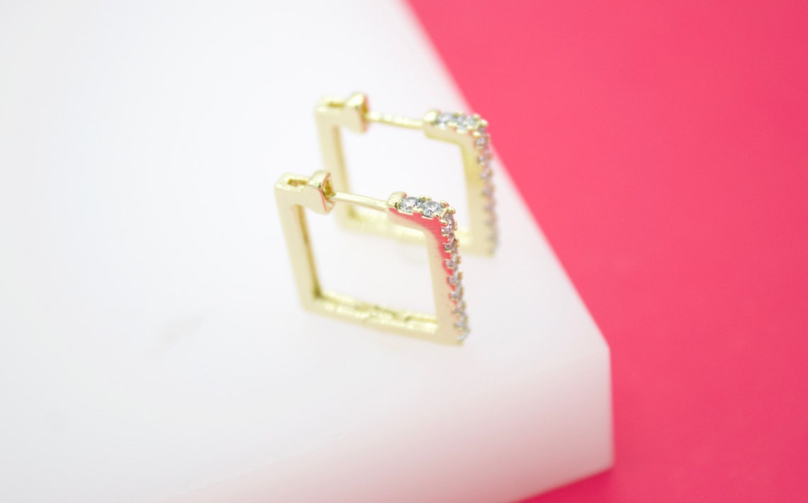 18K Gold Filled Large Squared Huggies Earrings With Round CZ (K221)
