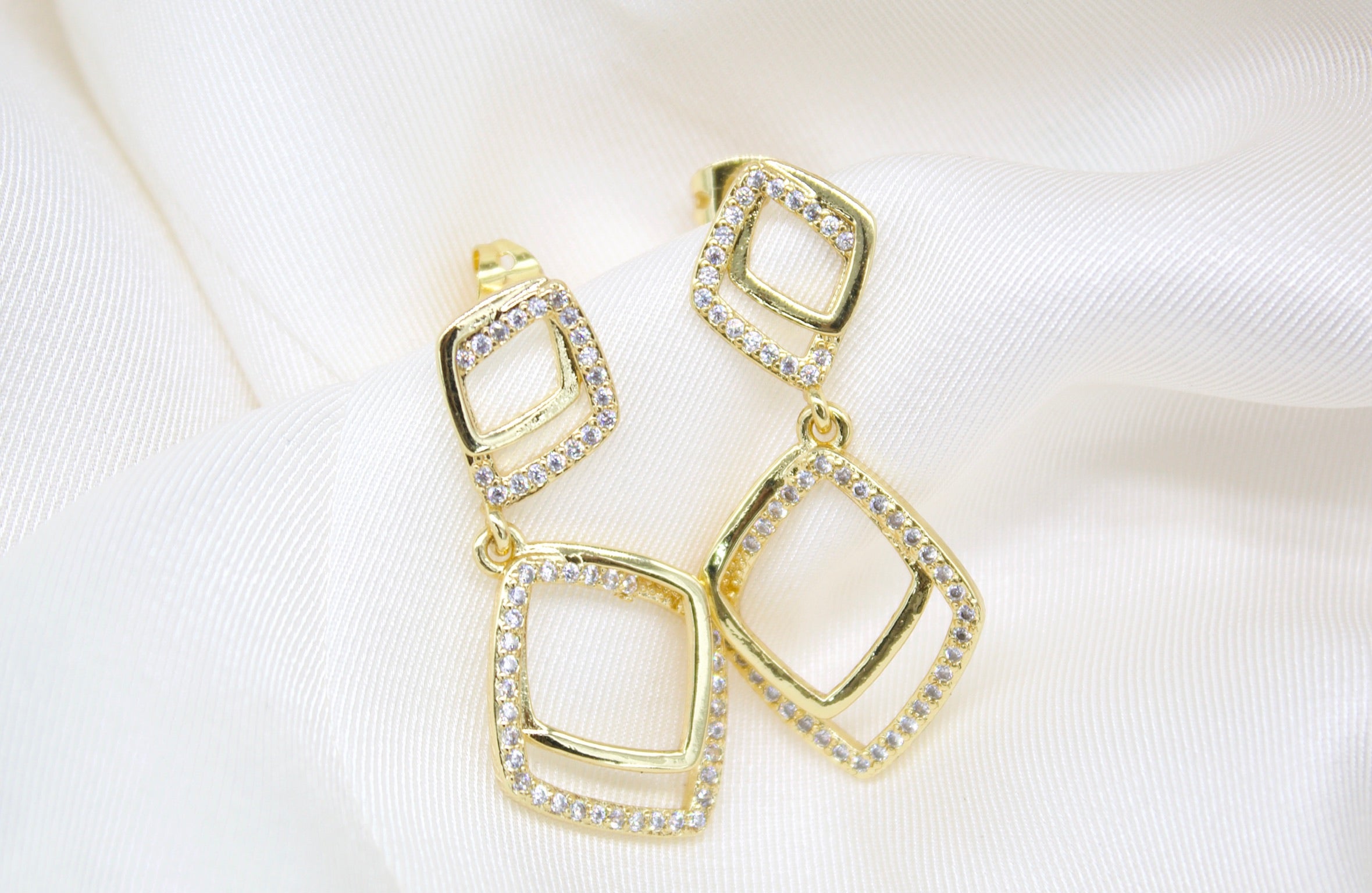 18K Gold Filled Modern Dangle Double Rings With CZ Cubic Zirconia Stone