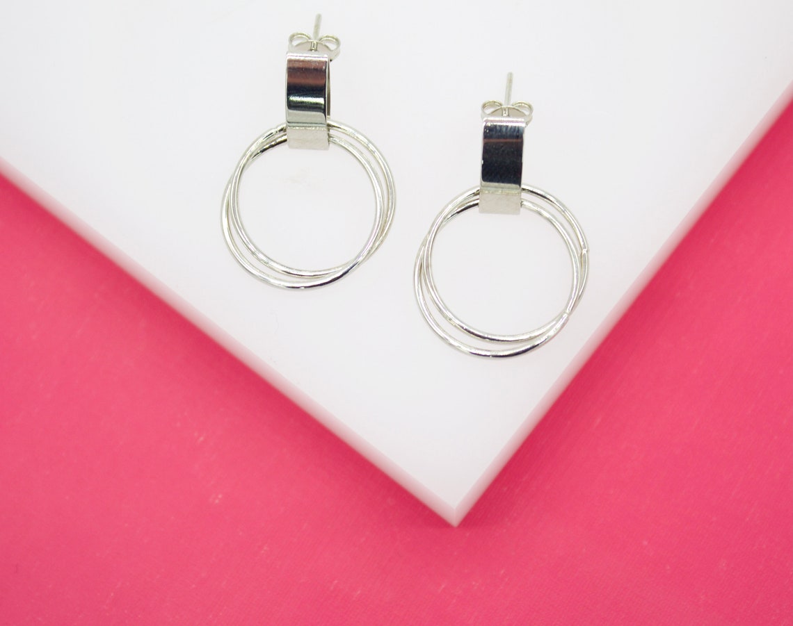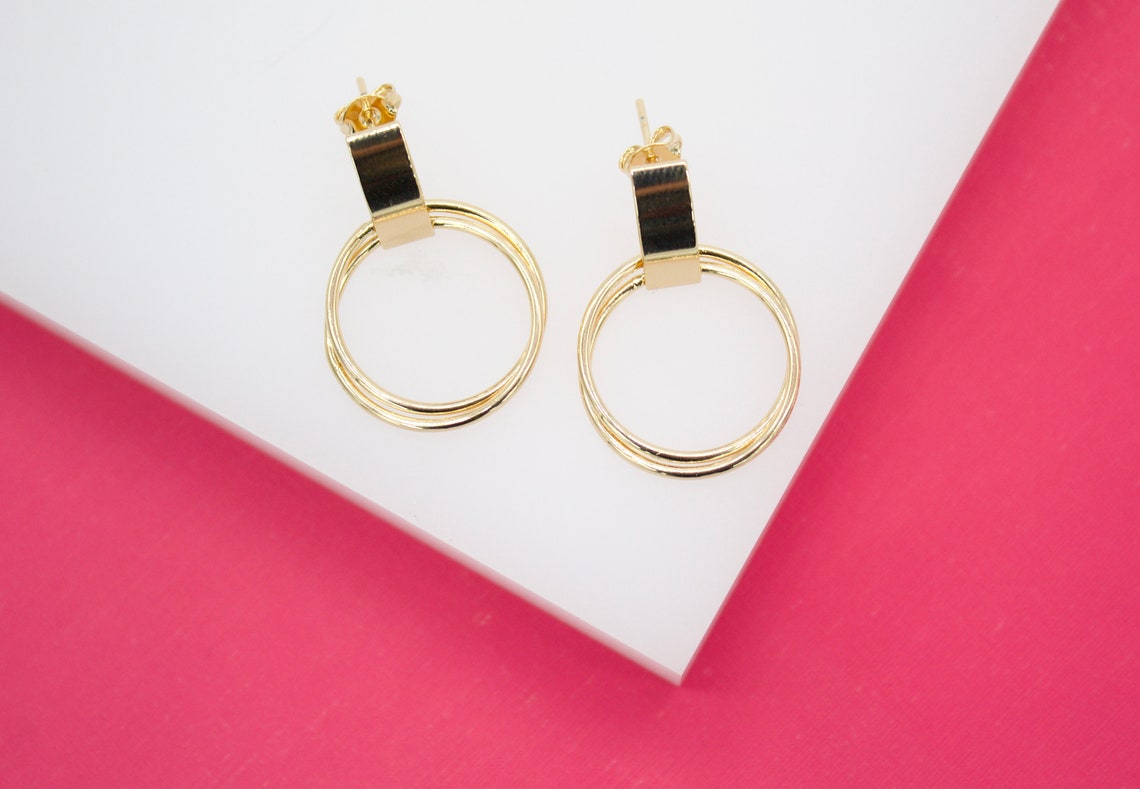 18K Gold Filled Modern 3 Ring Stud Earrings (L29)