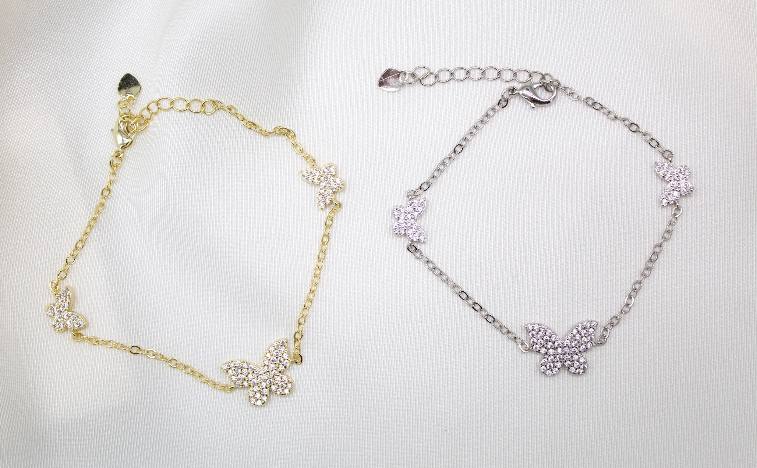 18K Gold Filled Rolo Bracelet With Micro Pave Butterfly Charms (I11)