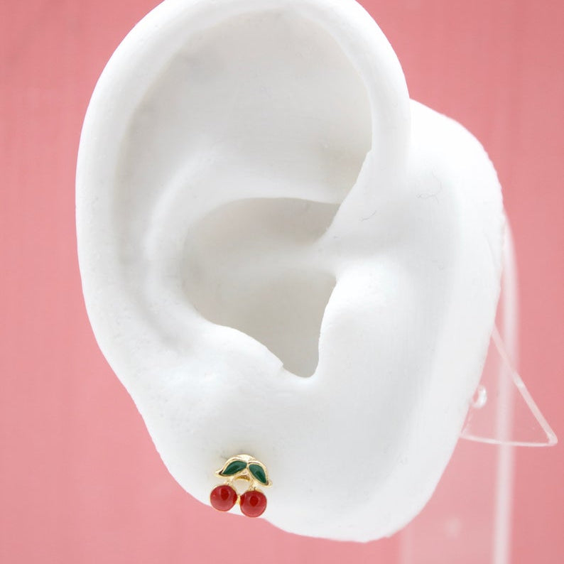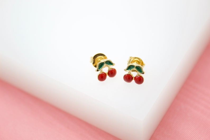18K Gold Filled Red Cherries Stud Earrings