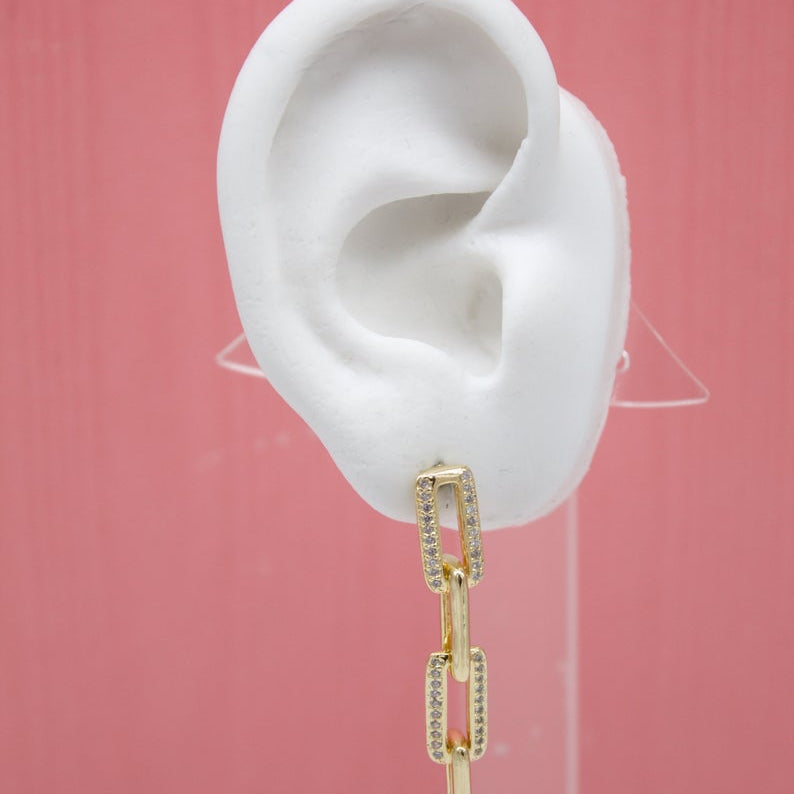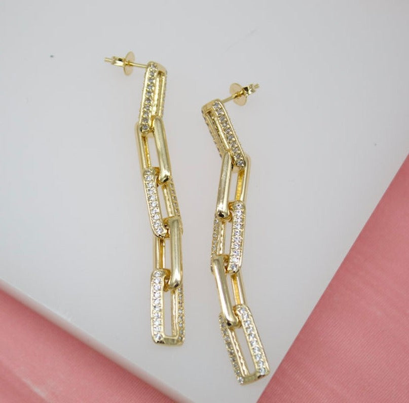 18K Gold Filled Rectangle Link Dangle and Drop Earrings With CZ Stones (K141B)
