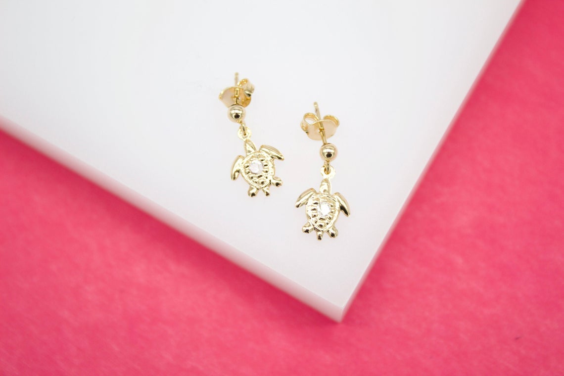 18K Gold Filled Sea Turtle Stud Dangle Earrings With CZ Stones (L17)