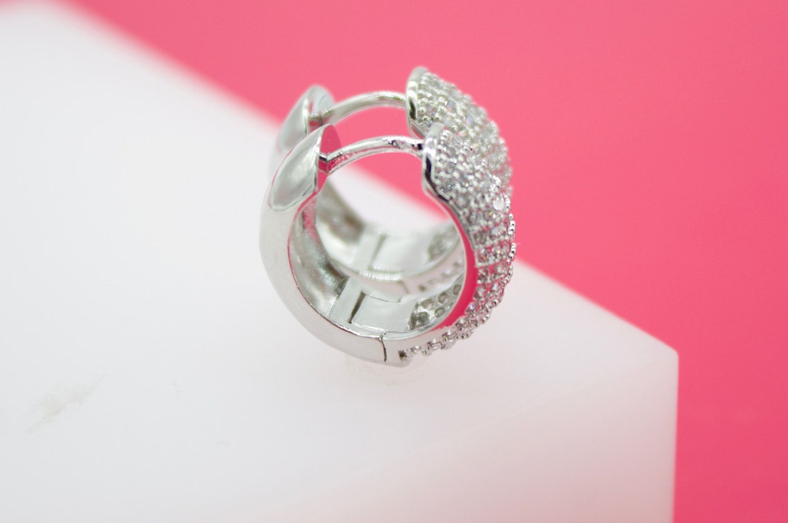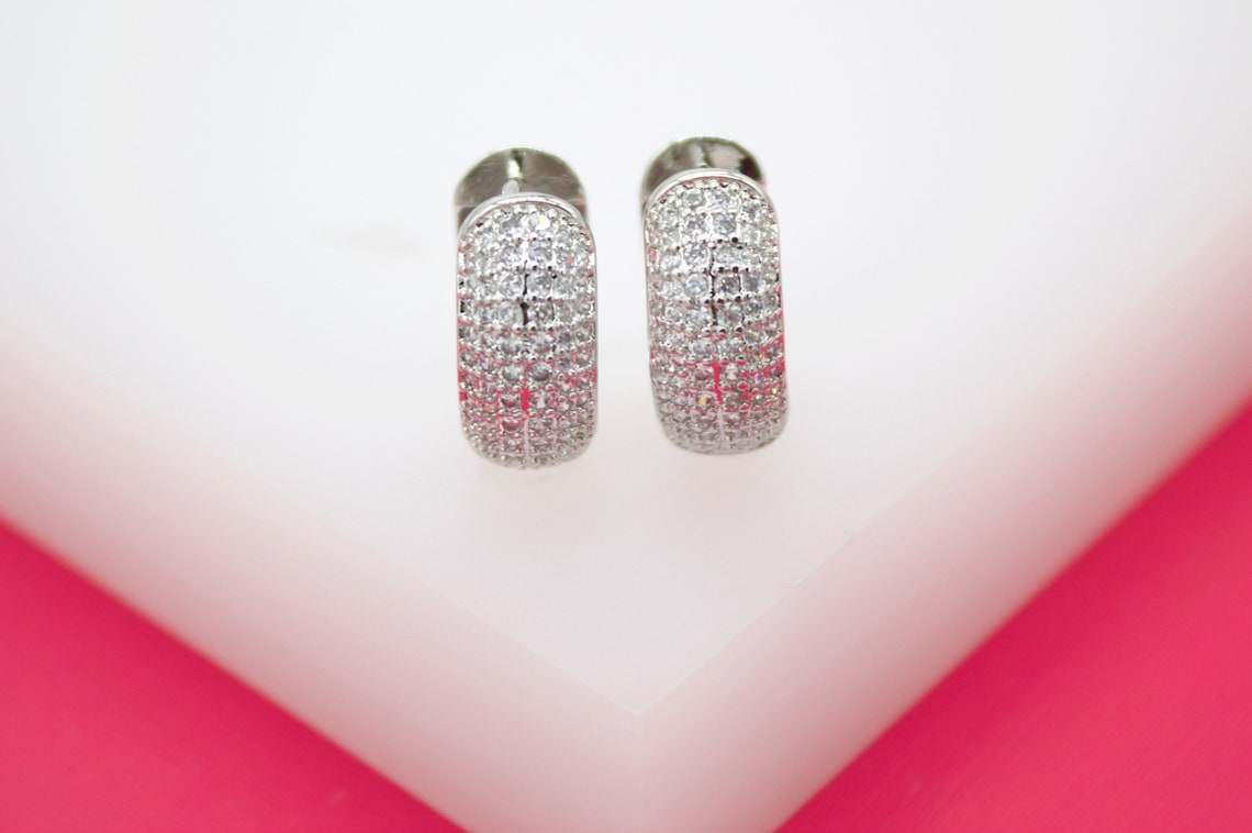 18K Gold Filled Rounded Pave CZ Huggies (L66)