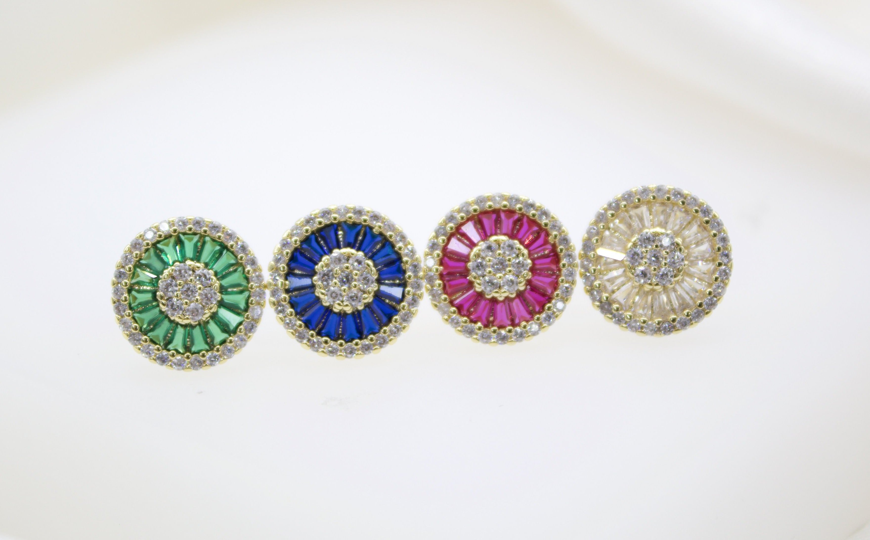 18K Gold Filled Rounded Pizza Shaped CZ Stud Earrings (L116)