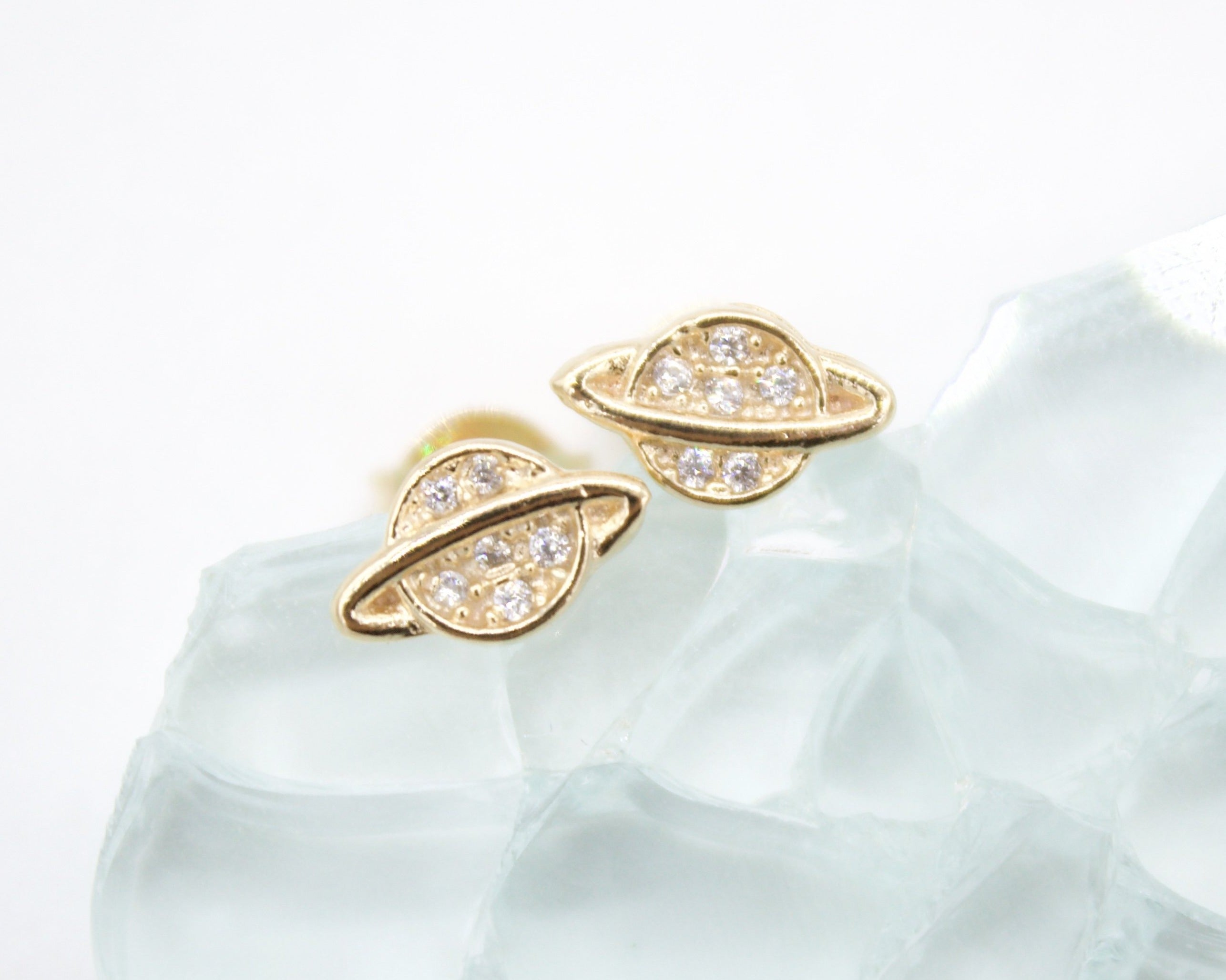 18K Gold Filled Saturn Planet Stud Earrings (L95)