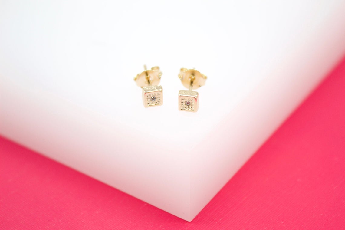 18K Gold Filled Square Stud With One CZ Stone Stud Earrings