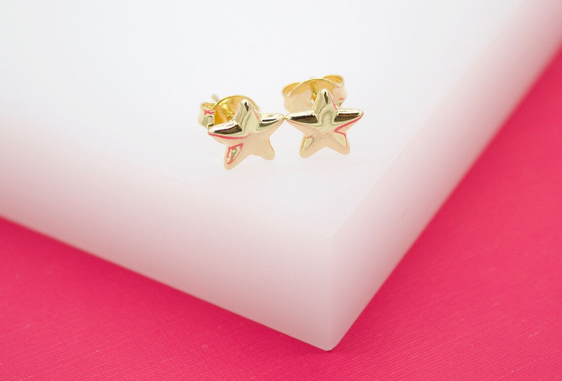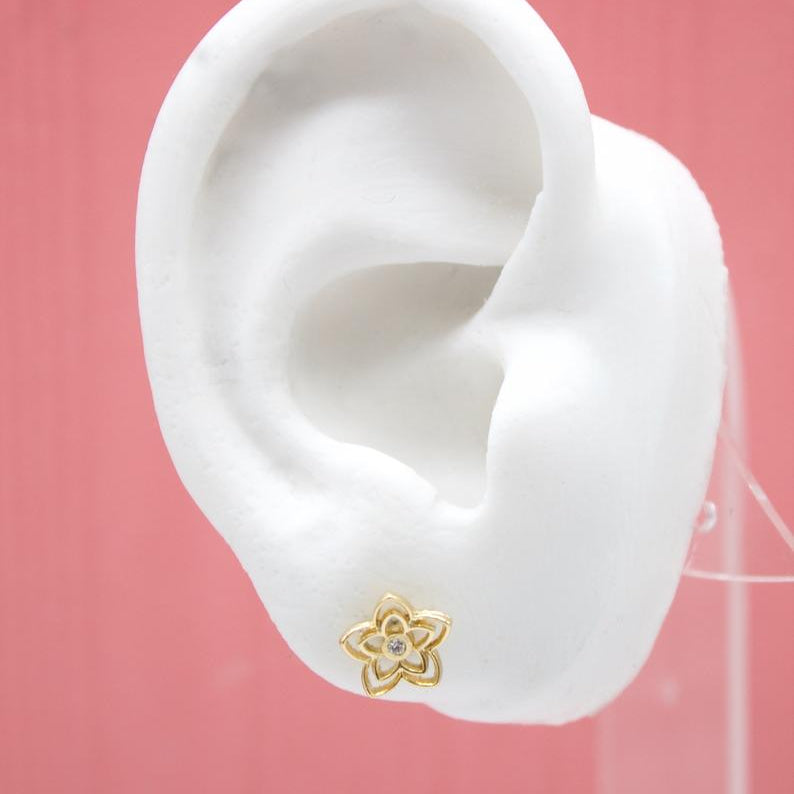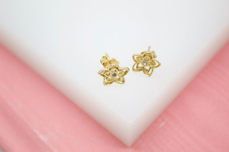 18K Gold Filled Star Flower Stud Earrings With A CZ Cubic Zirconia