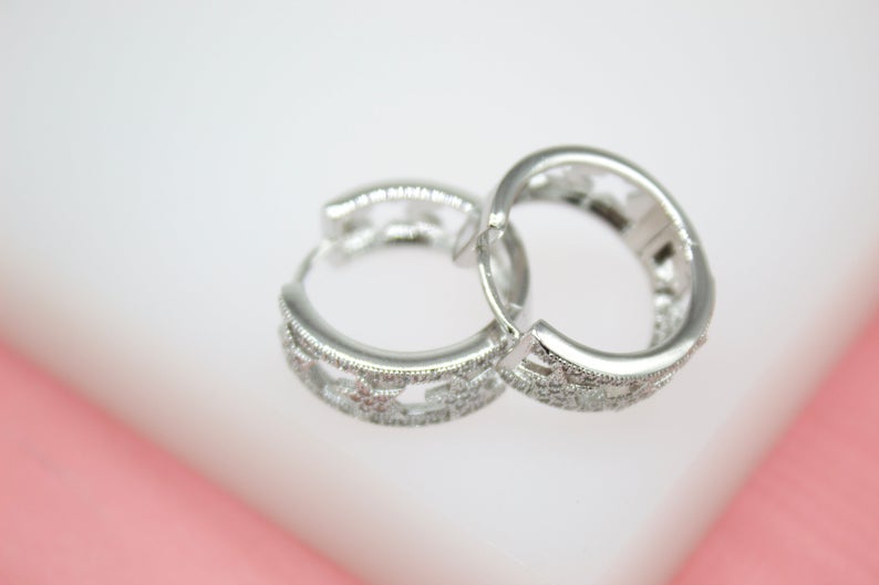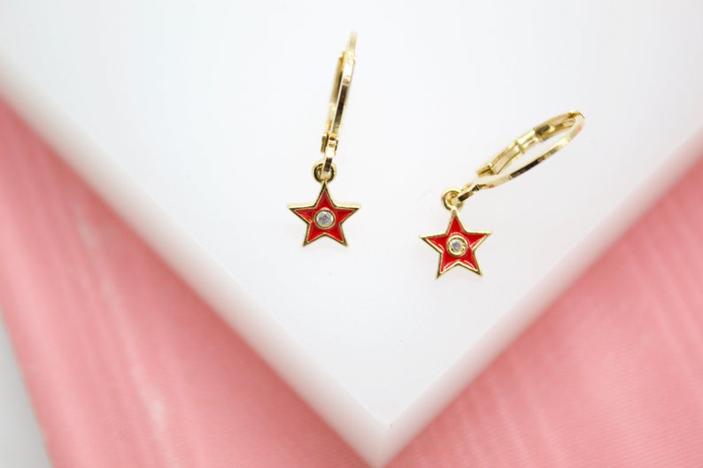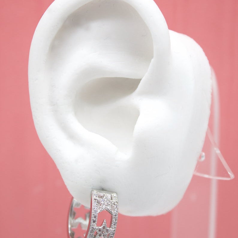 18K Gold Filled Star Huggies Earrings With Mirco CZ Cubic Zirconia Stones