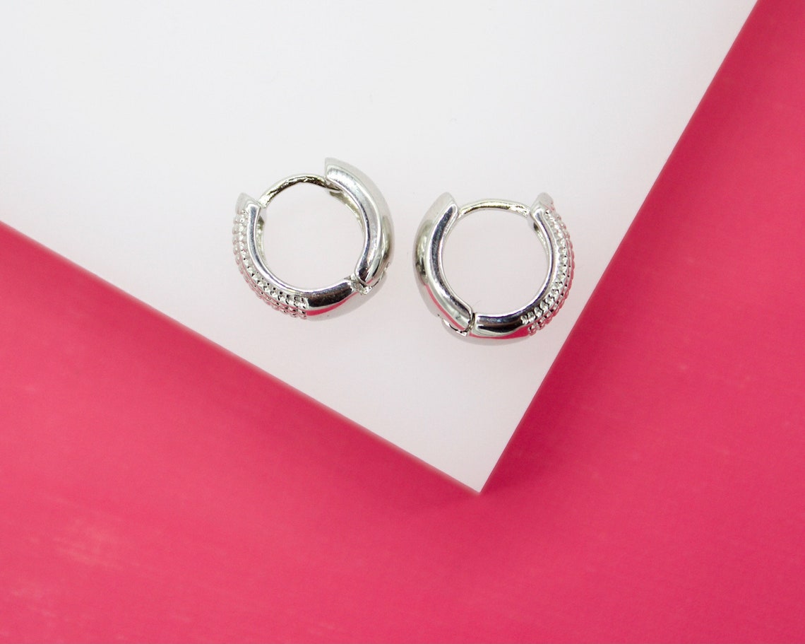 18K Gold Filled Textured 4mm Slim Hoops Lever Back Hoop (J124-126)
