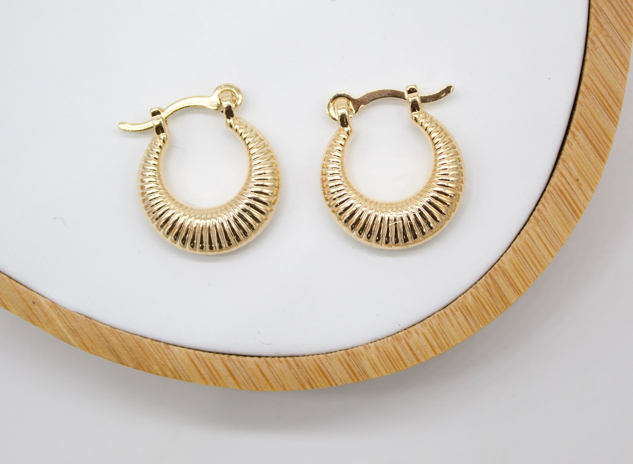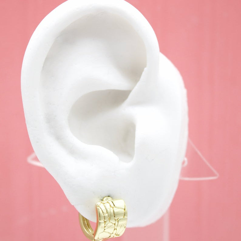 18K Gold Filled Textured Croissant Lever back Hoop Earrings (K63)