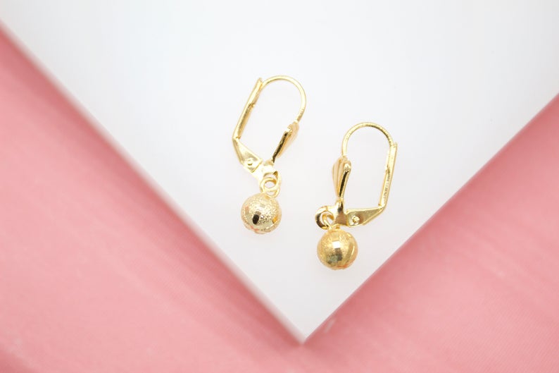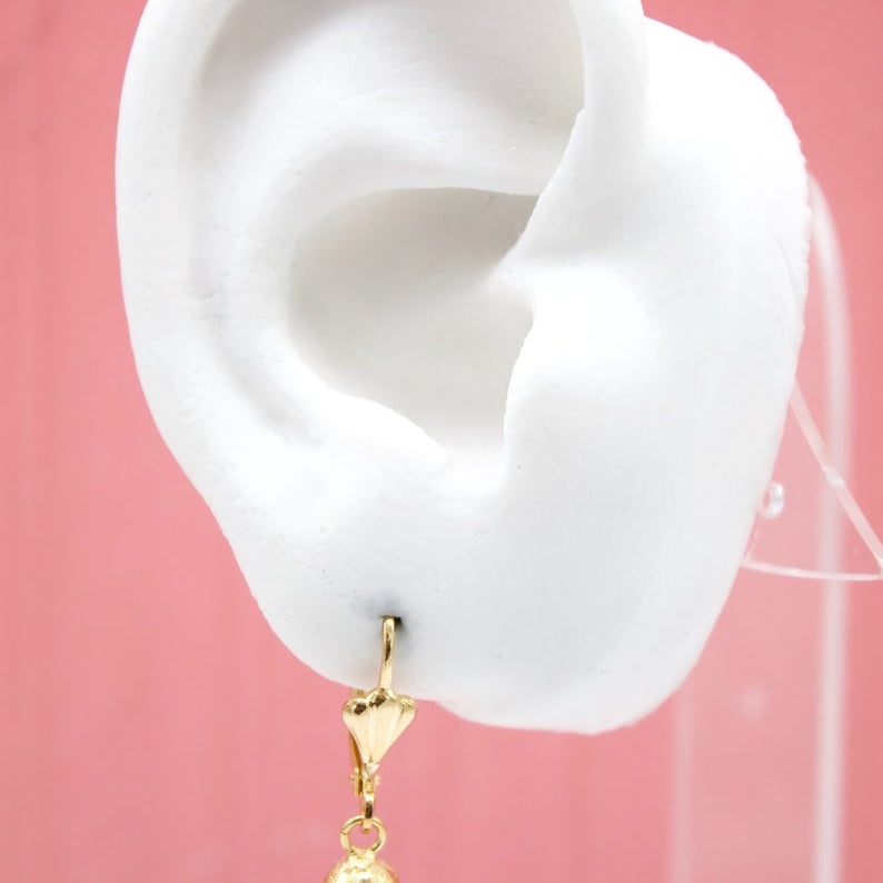 18K Gold Filled Textured Golden Ball French Lever Back Earrings