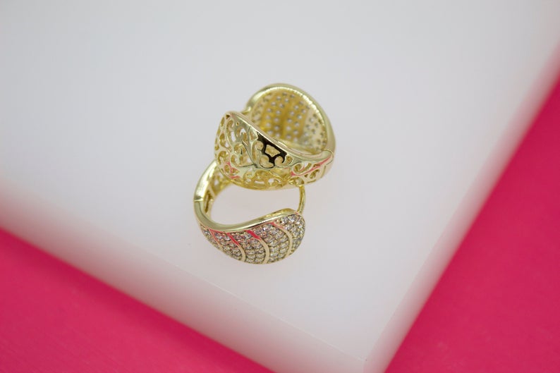 18K Gold Filled Thick Huggies With Layered CZ Cubic Zirconia Stones (L68)
