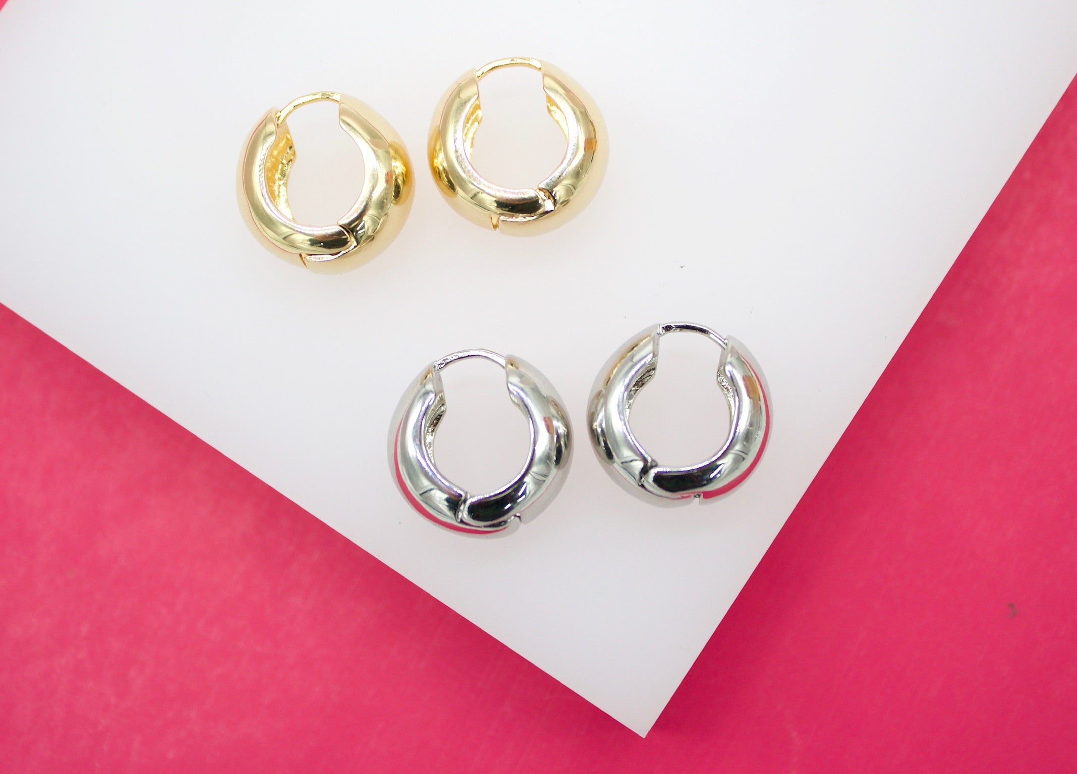 18K Gold Filled Thick Huggies Earrings With Micro Clear CZ Cubic Zirconia (L289)