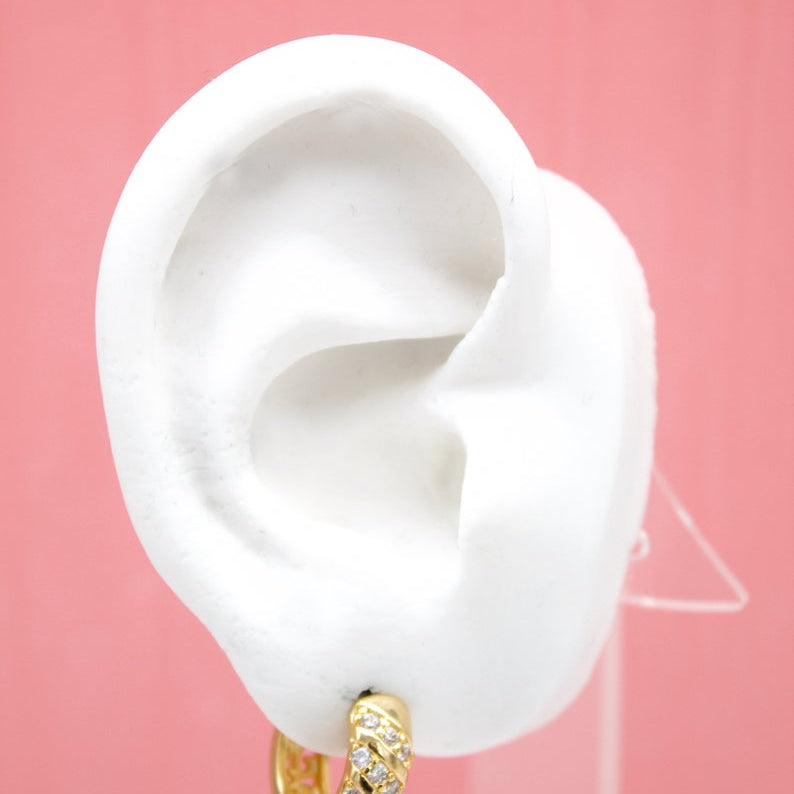 18K Gold Filled Thick Huggies Earrings With Slanted Clear CZ Cubic Zirconia Stones