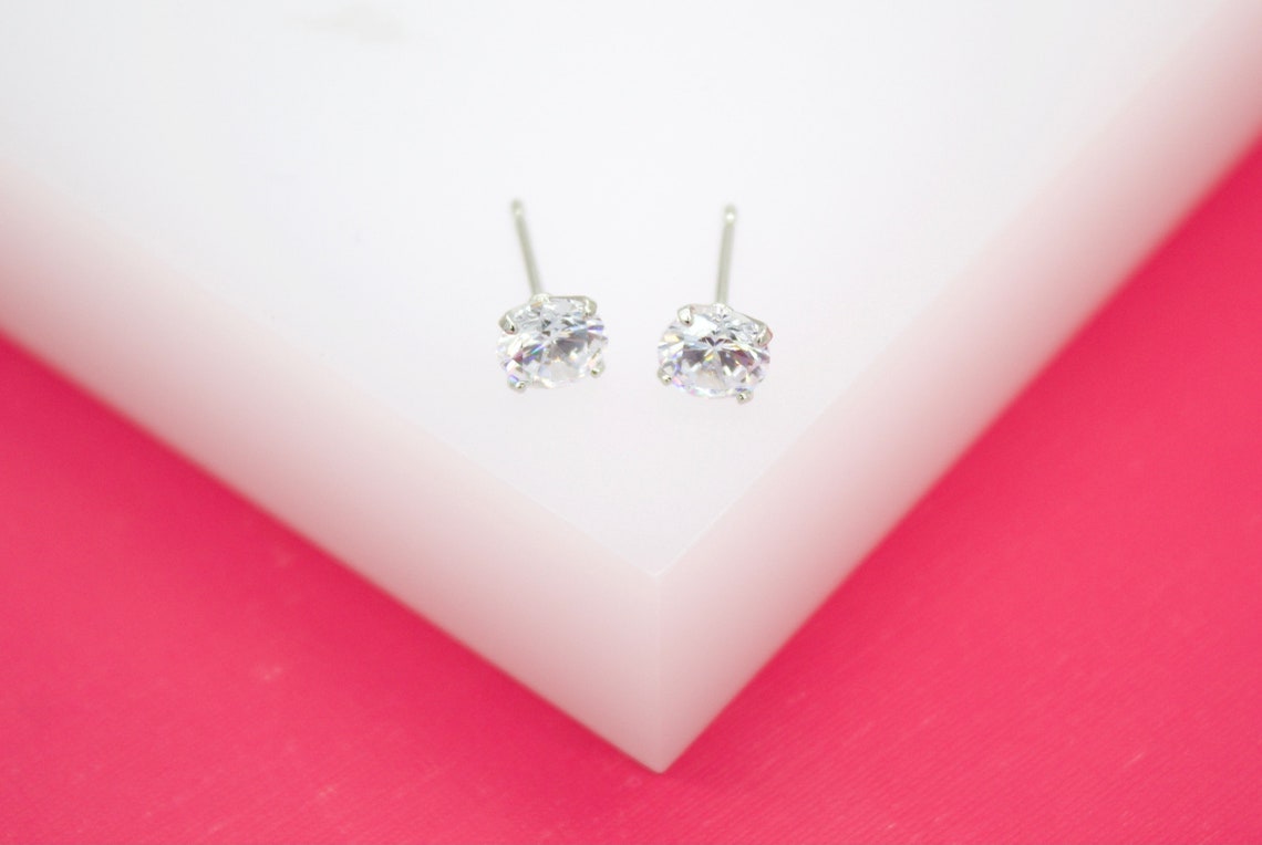 18K Rhodium Filled 5mm Clear Round CZ Cubic Zirconia Stone Stud Earrings