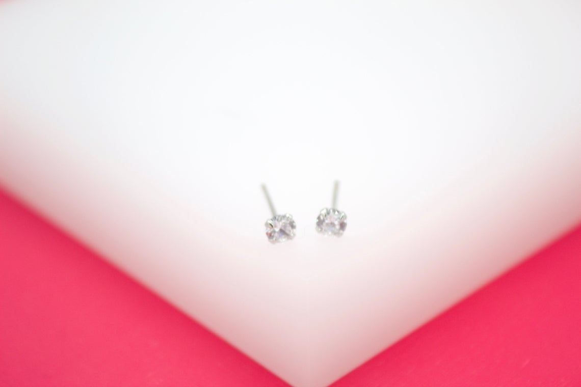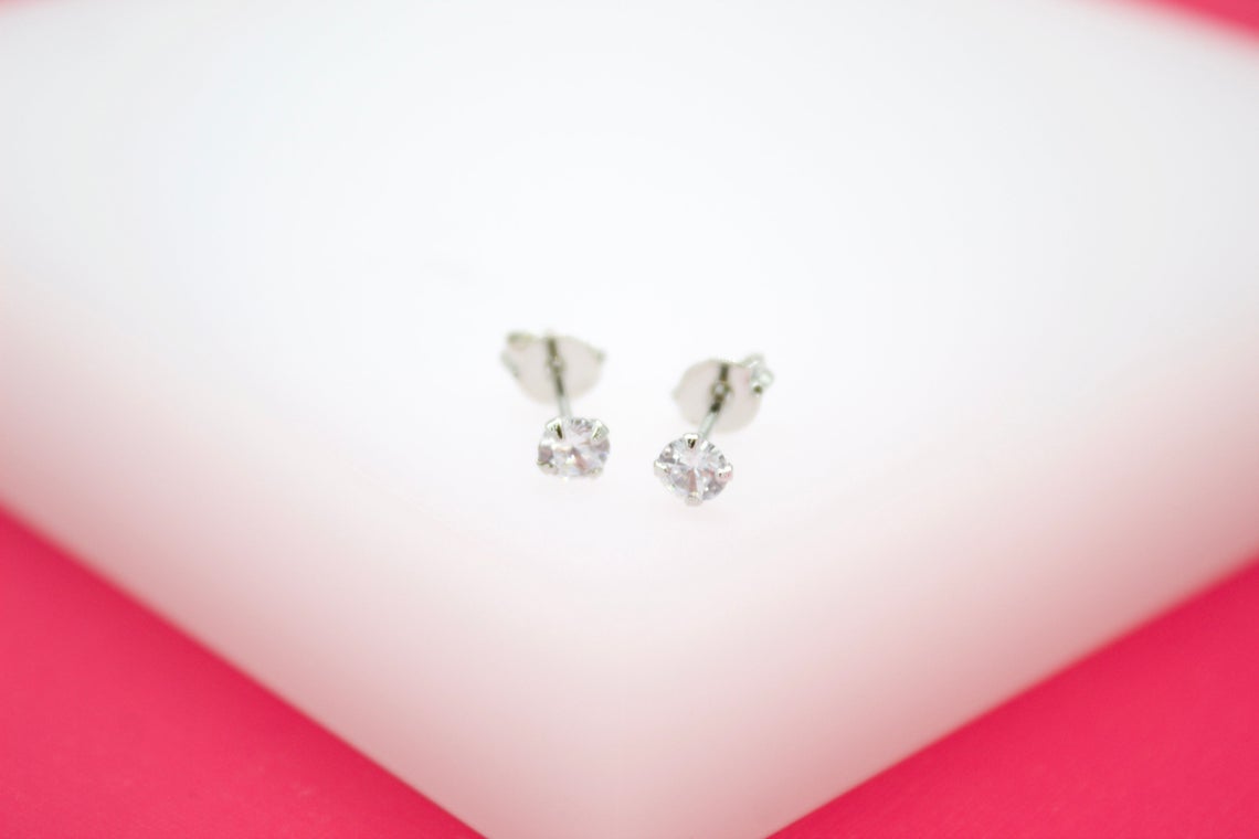 18K Rhodium Filled 4mm Round Cut CZ Cubic Zirconia Stone Stud Earrings (L134)