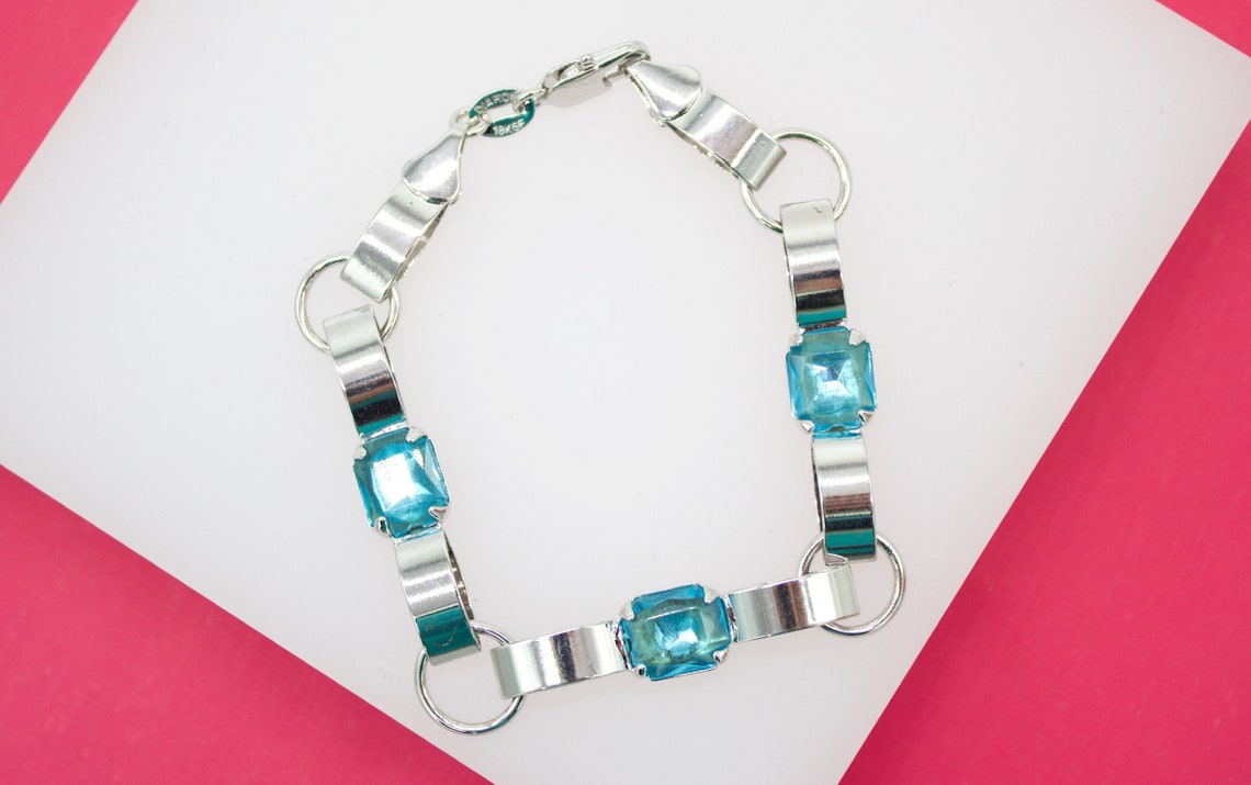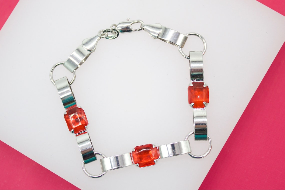 18K Rhodium Filled 8mm Link Bracelet With oval CZ