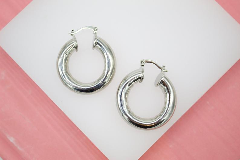 18K Rhodium Filled 7mm Thick Chunky Open Hoop Earrings (J29)(J30)