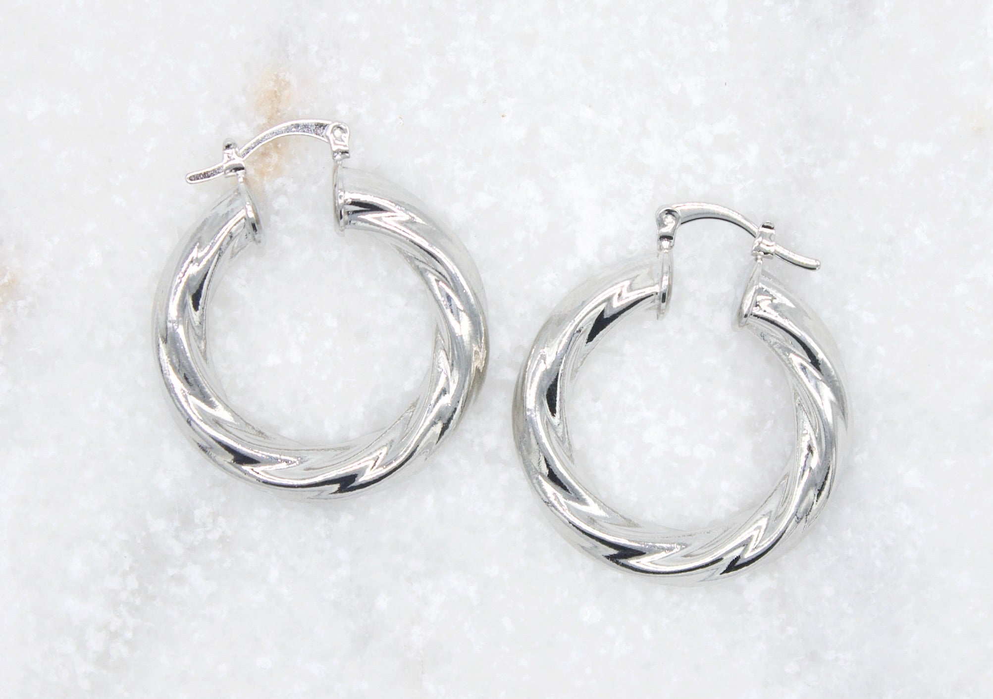 18K Rhodium Filled Thick Twisted Hoops Earrings (J115, J116, J117, J156)