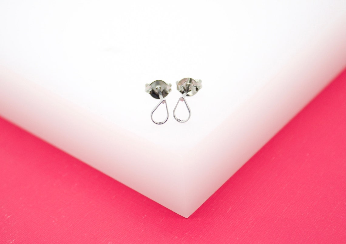 18K Rhodium Filled Tear Drop Shaped Stud Earrings (L151-152)