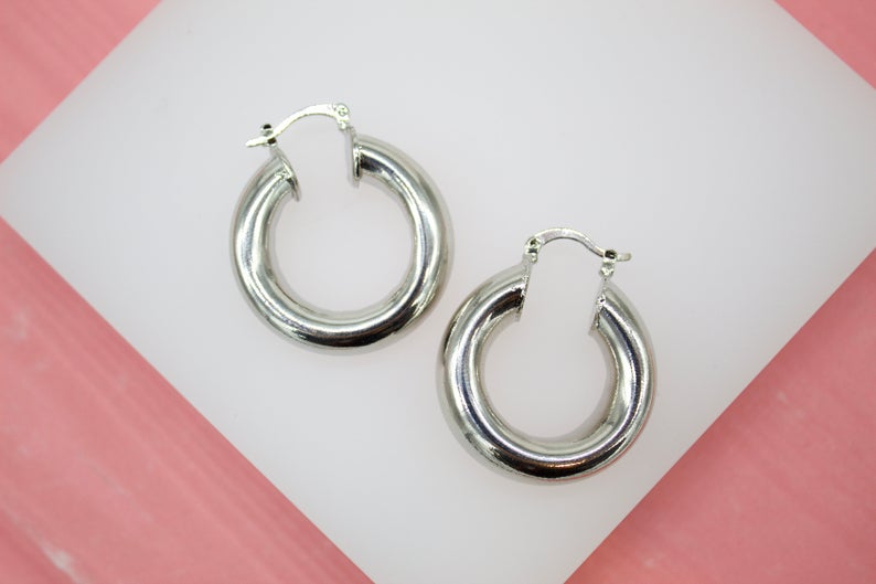 18K Rhodium Filled Thick Hoop Earrings (J23)