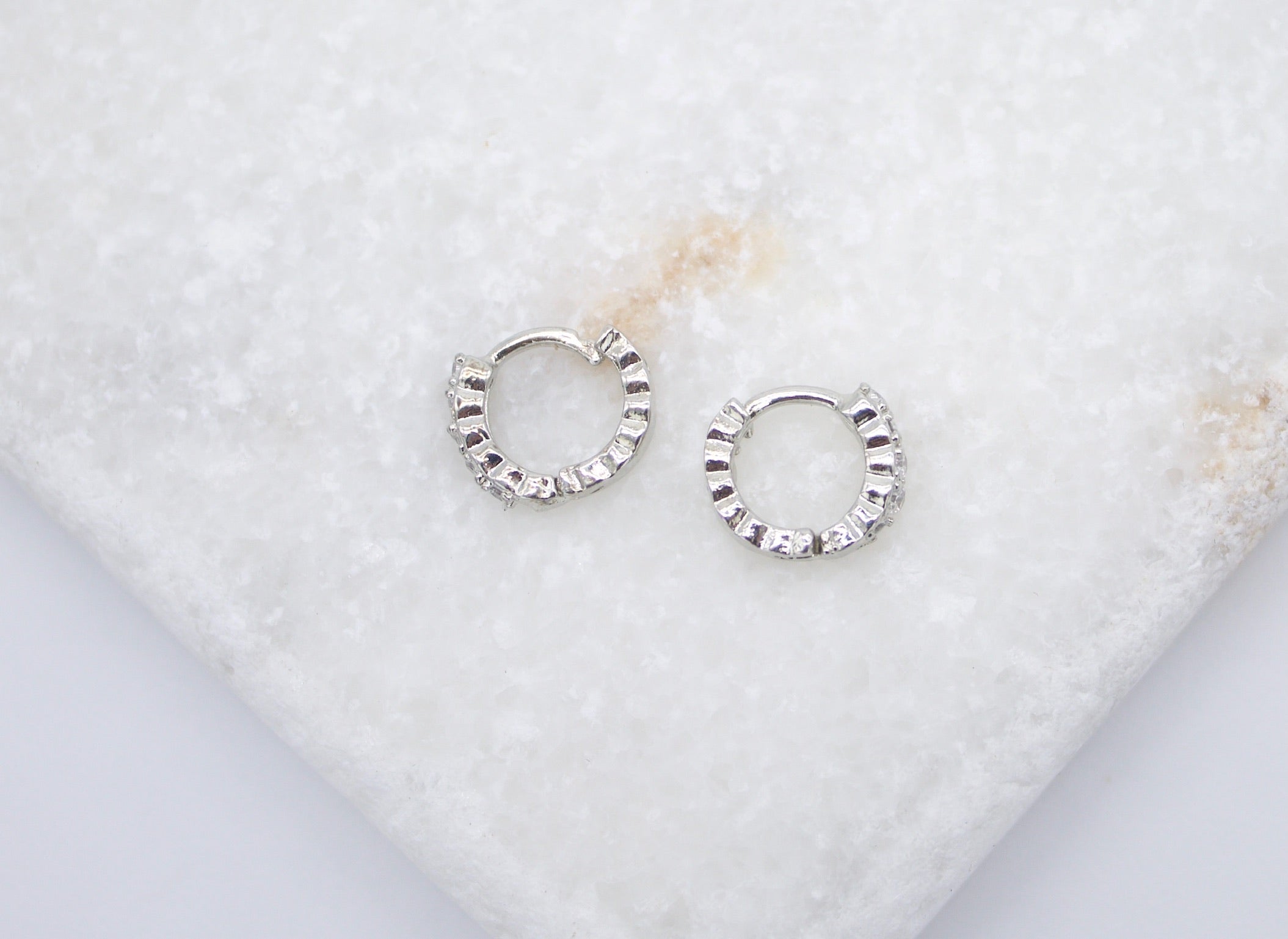 18K Rhodium Filled Tiny Curved Huggies With CZ Cubic Zirconia Stones