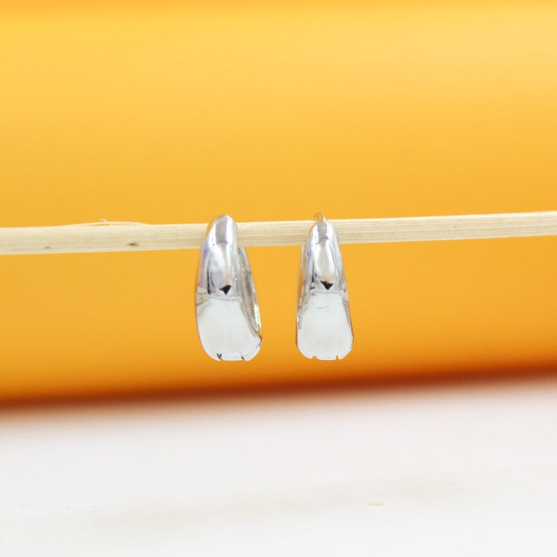 18K Rhodium Filled Thick Huggies Earrings (L269)