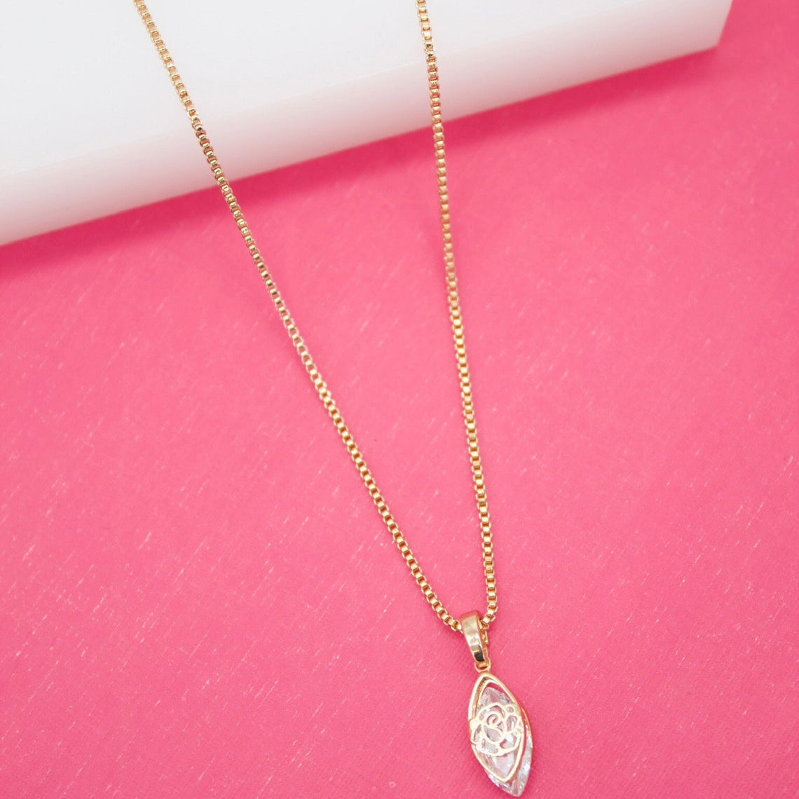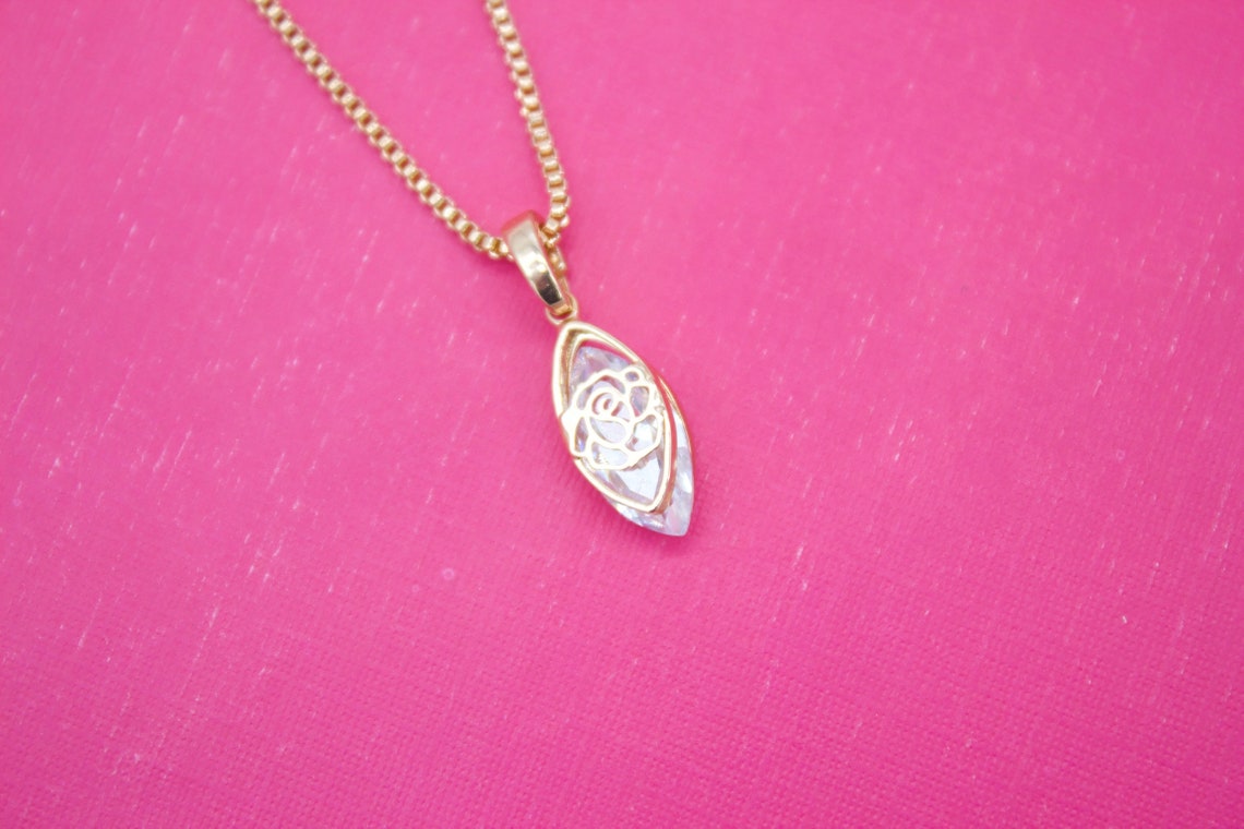 18K Rose Gold Filled Oval Cubic Zirconia Stone With Flower outline