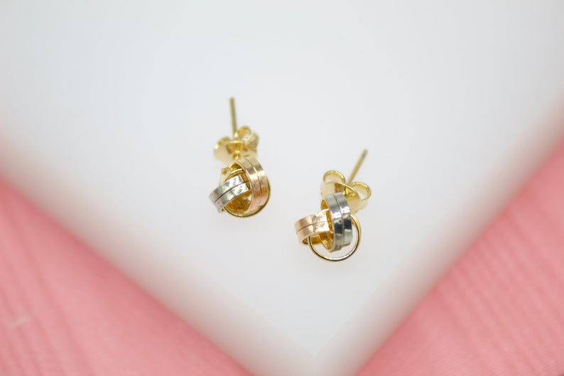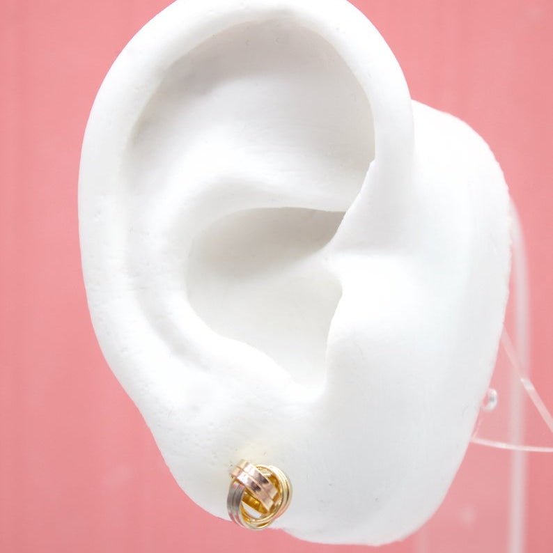 18K Rose Gold, Rhodium Filled Wire Knot Stud Earrings (L125)