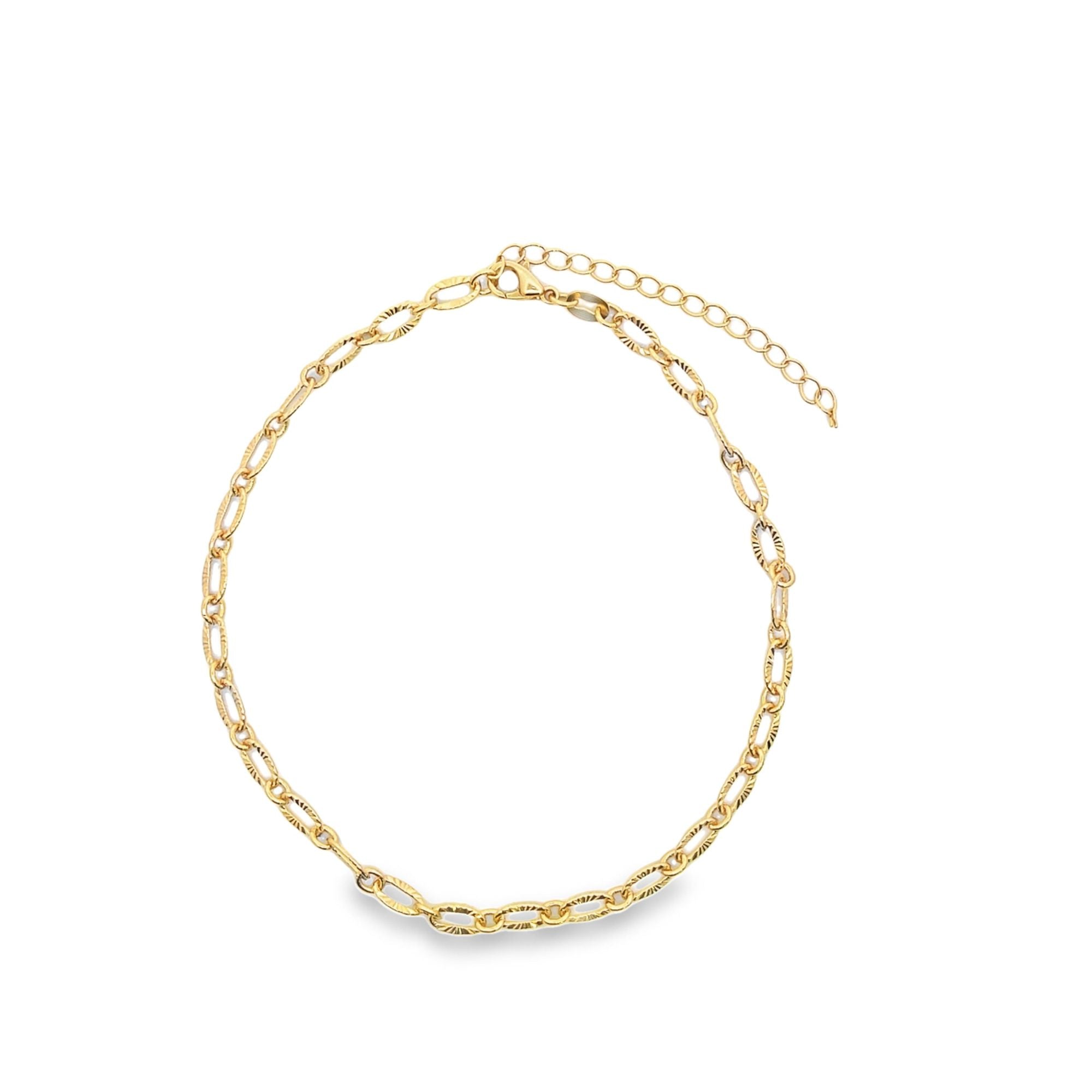 18K Gold Filled 4mm Textured Link Anklet (E83)