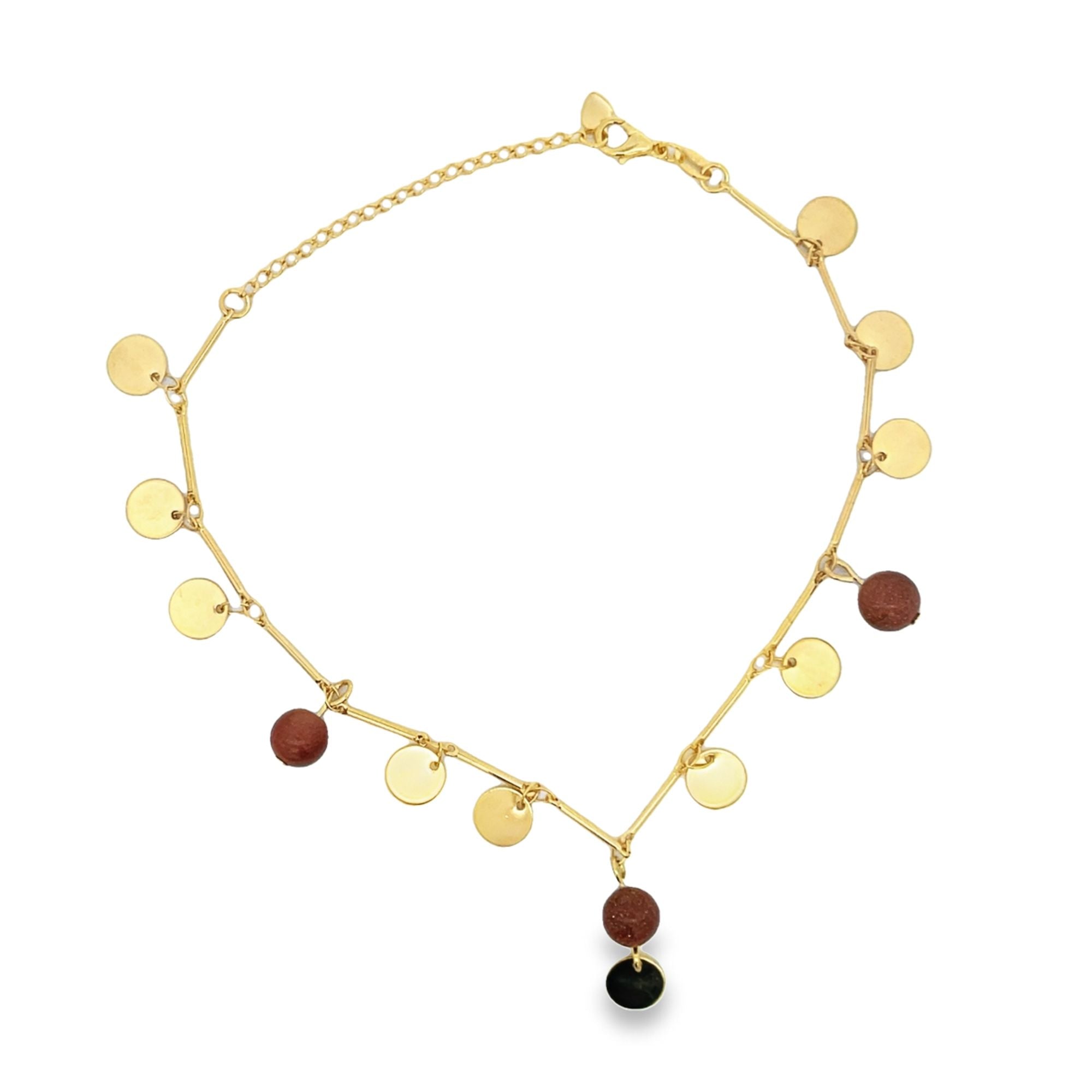 18K Gold Filled Brown Aventurine Gemstone Charm With Dangle Circles Anklet (E97)