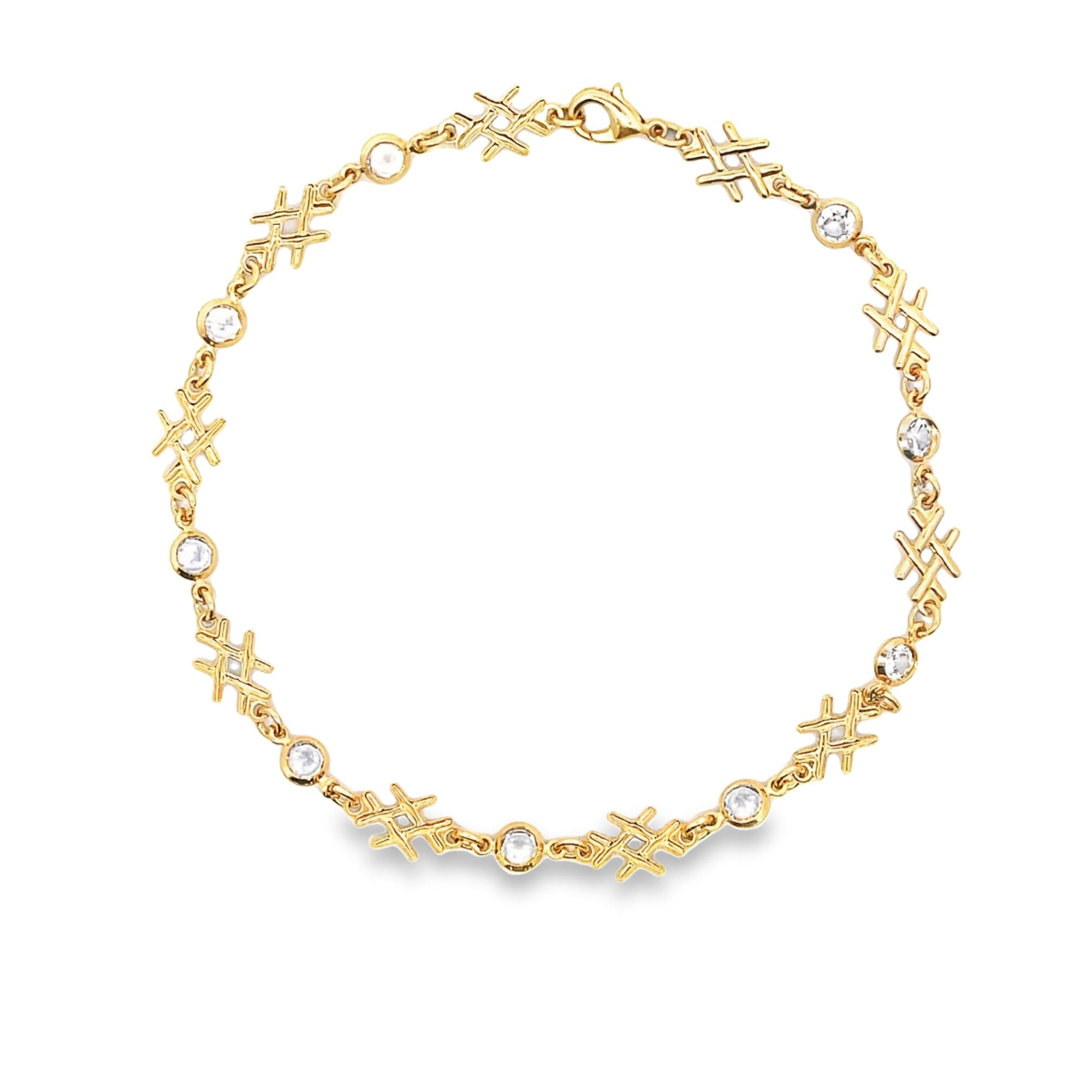 Gold Filled Criss Cross Anklet With Round CZ Stones (E189)