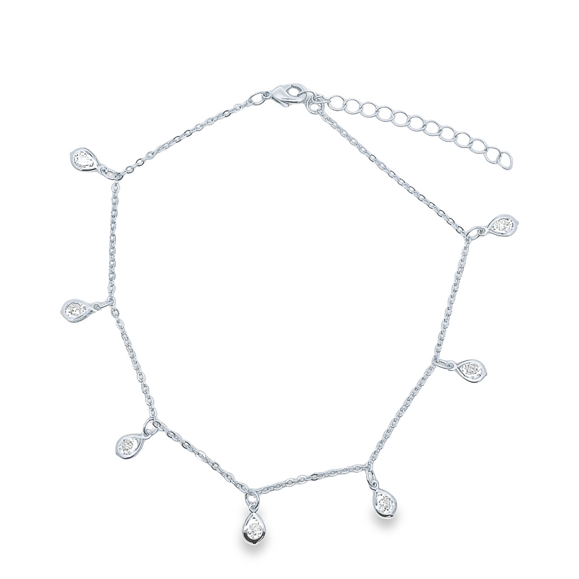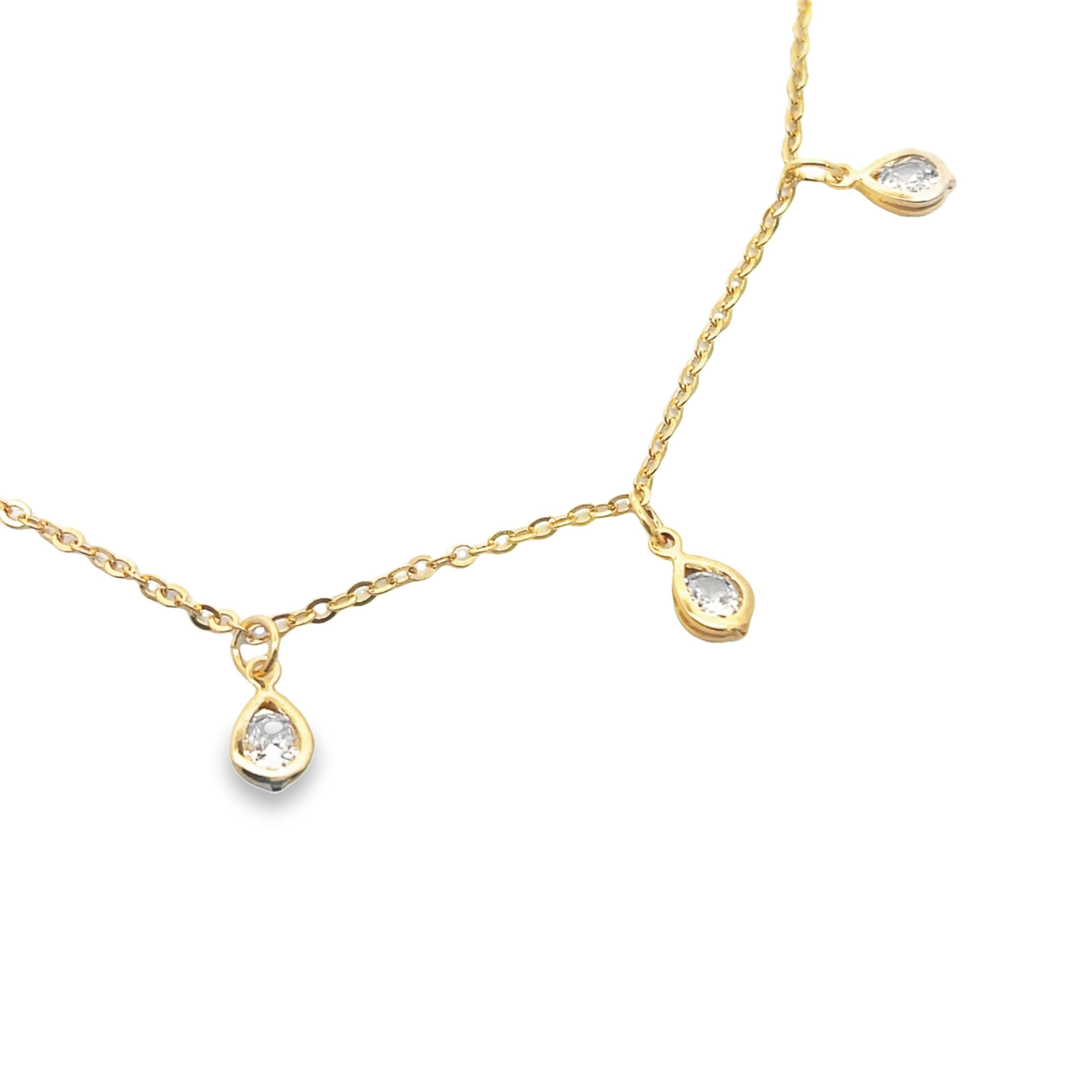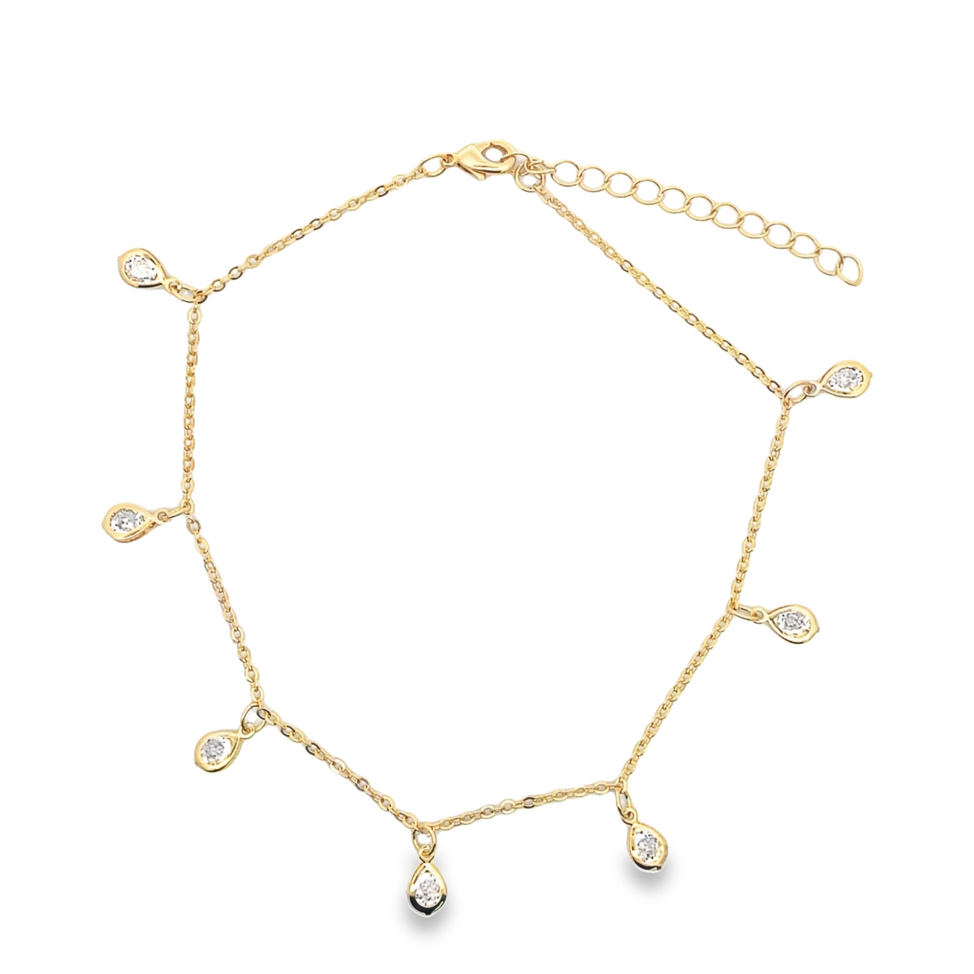 18k Gold Filled Dainty Anklet With Teardrop Clear Cubic Zirconia Stones (E226)
