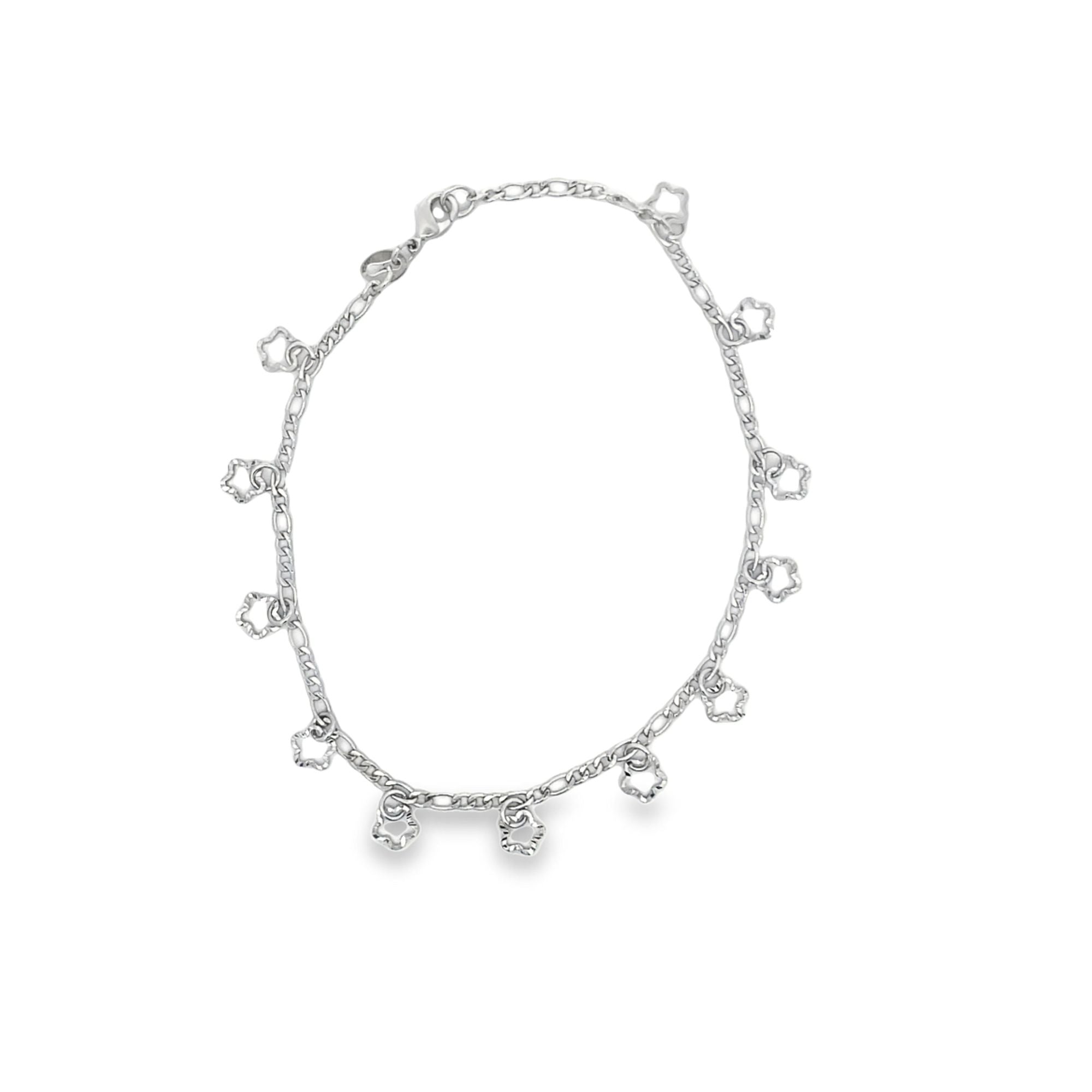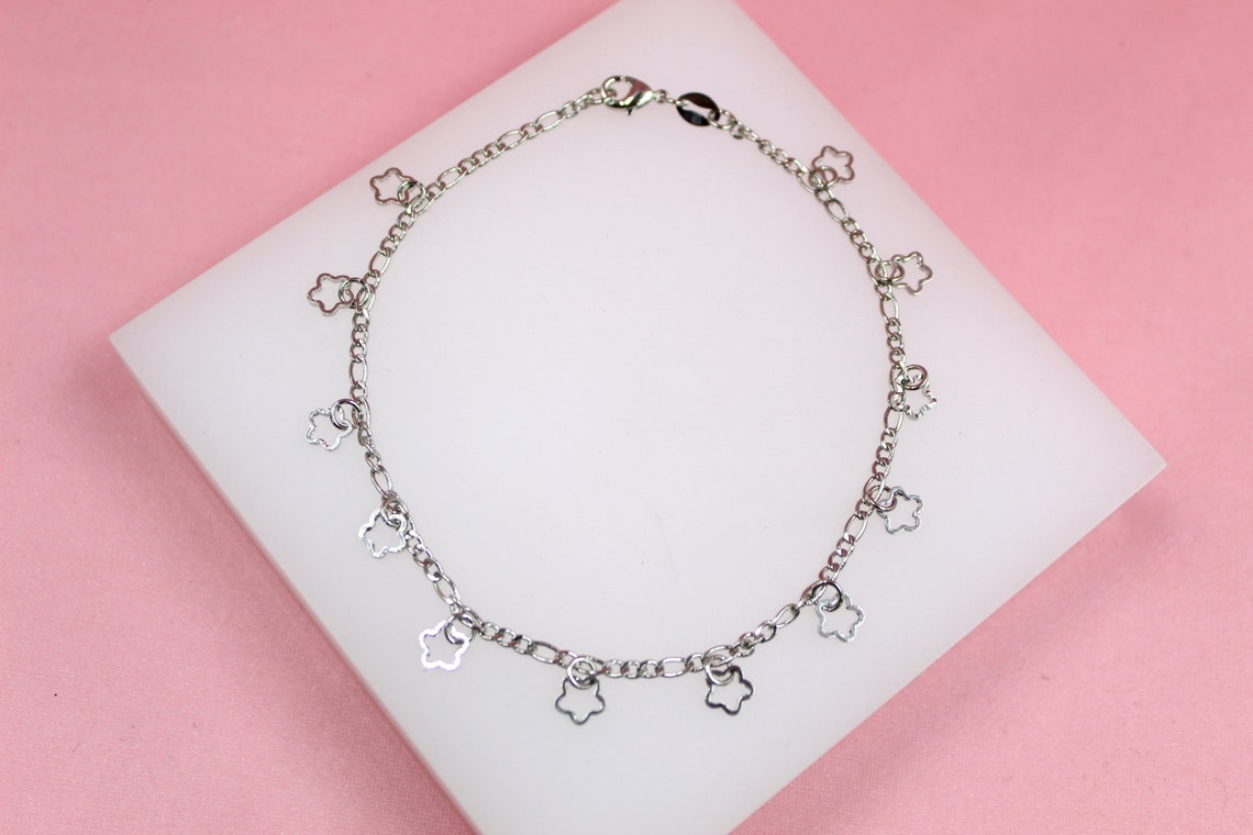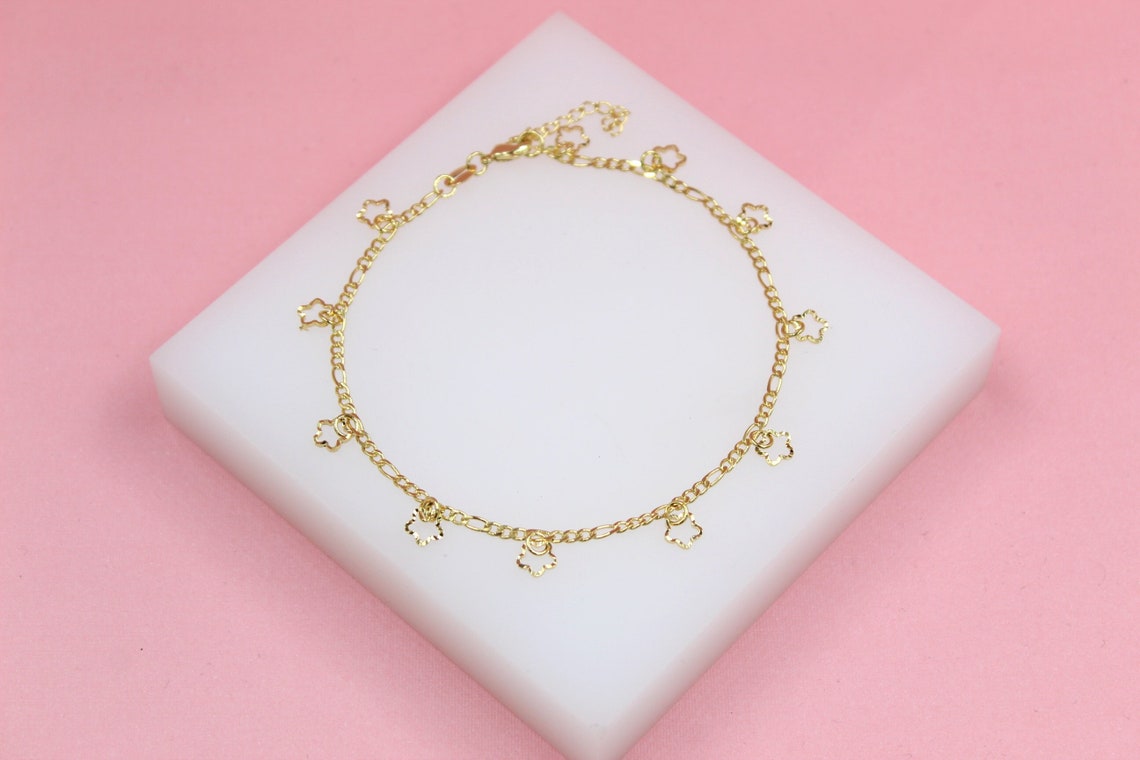 18K Gold Filled Dangle Outlined Flower Charm Anklet (E10)