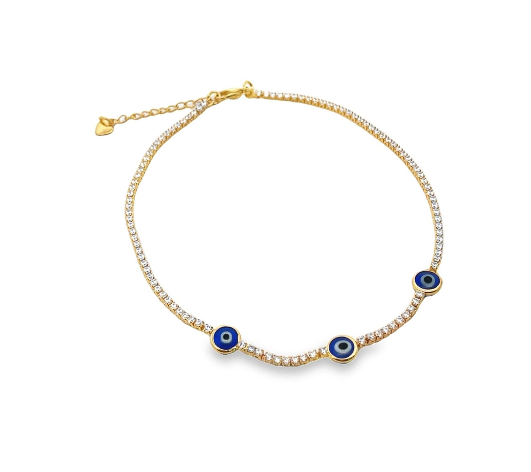 18K Gold Filled Lucky Eye Anklet With CZ Stones (I149)