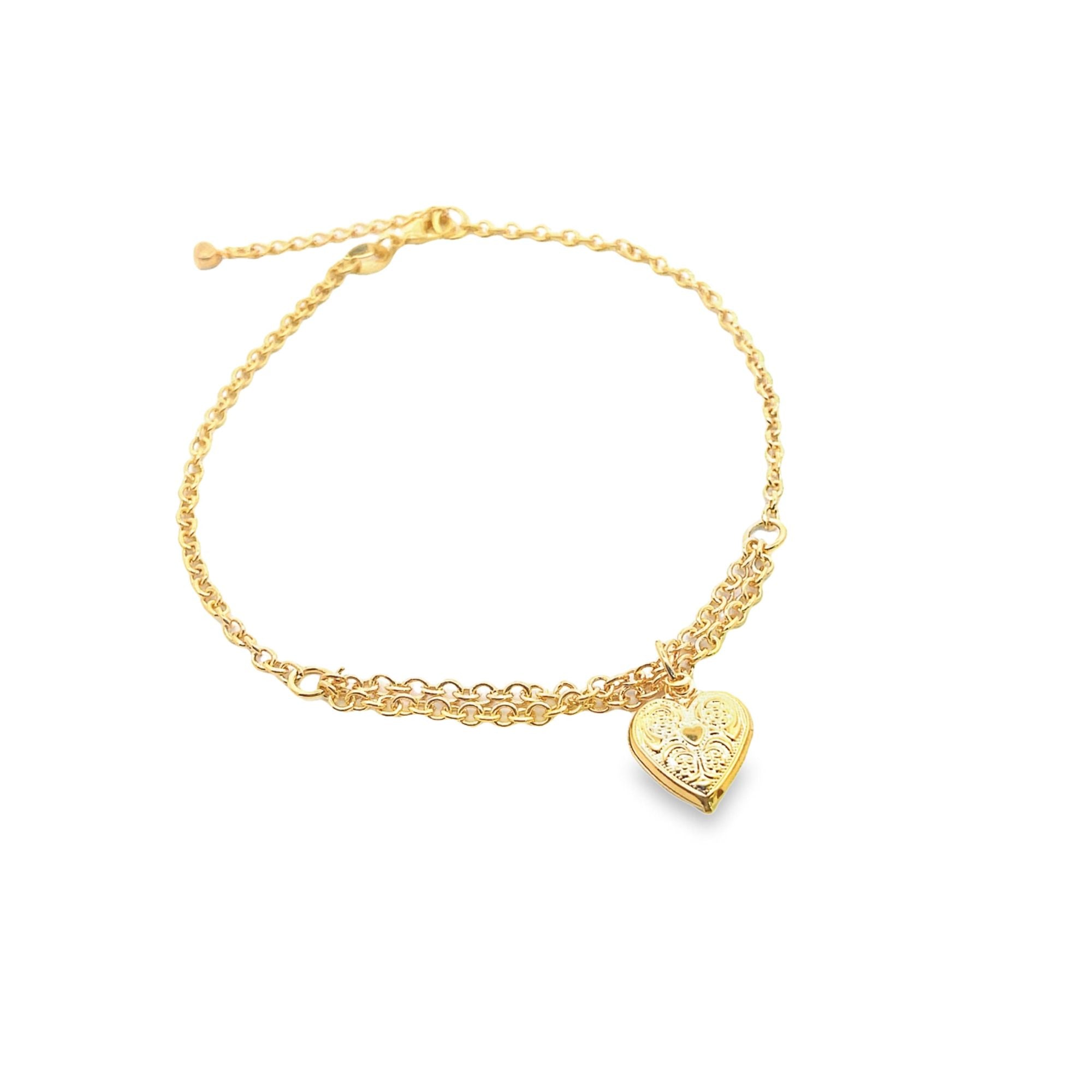 18K Gold Filled Heart Charm Anklet With A Round CZ Stone (E15)