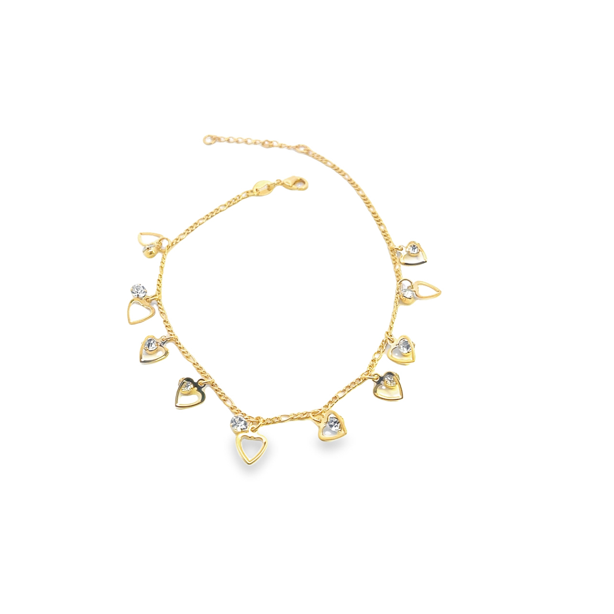 18K Gold Filled Outline Heart Charm Anklet With Round CZ Stone (E14)