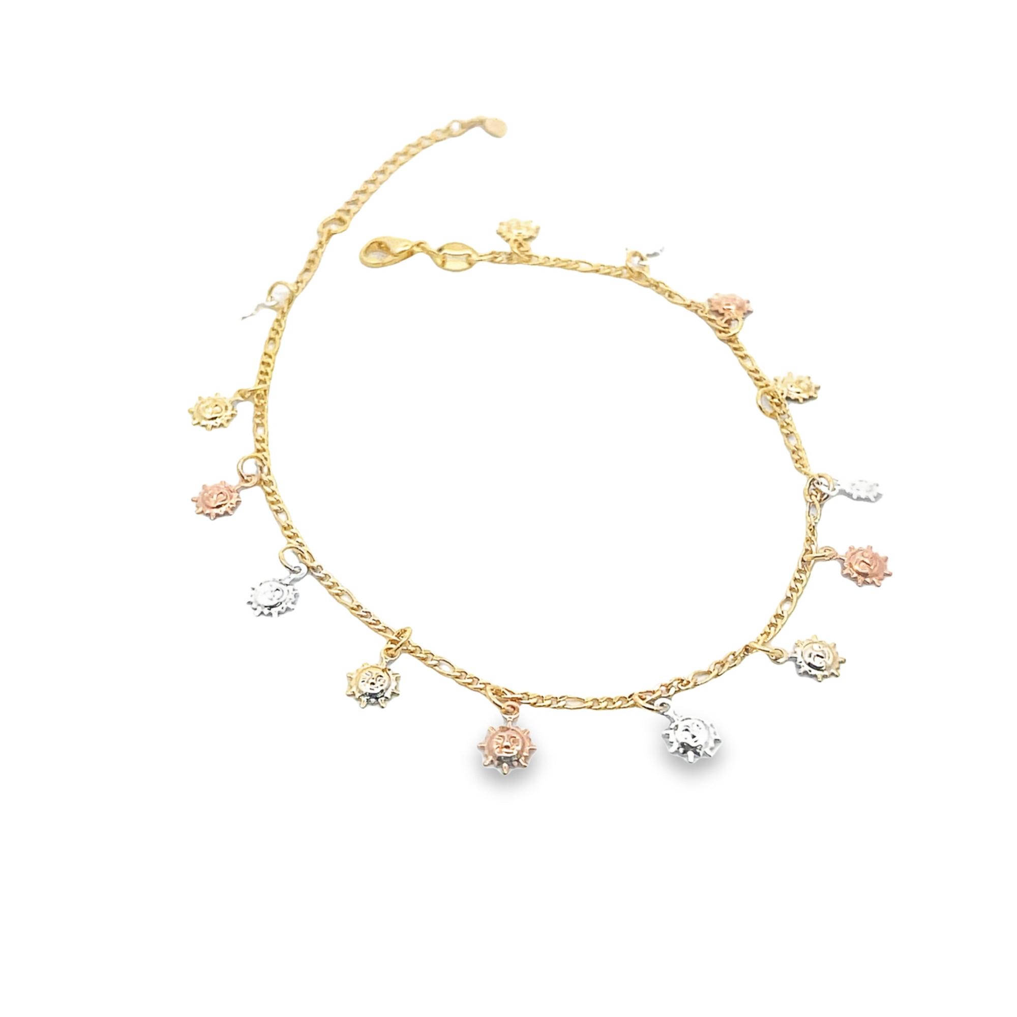 18K Gold Filled Sun Charm Figaro Chain Link Anklet (E247)