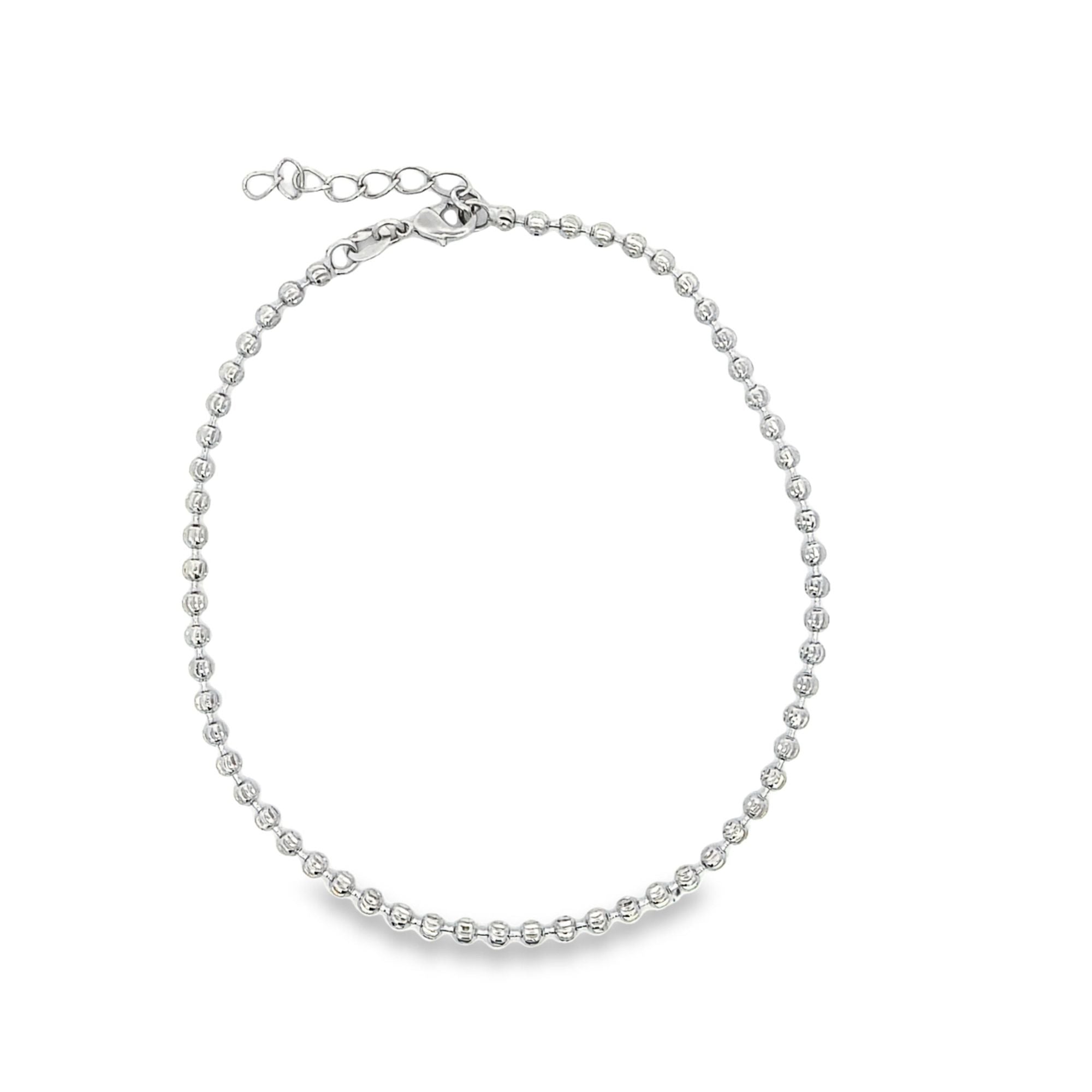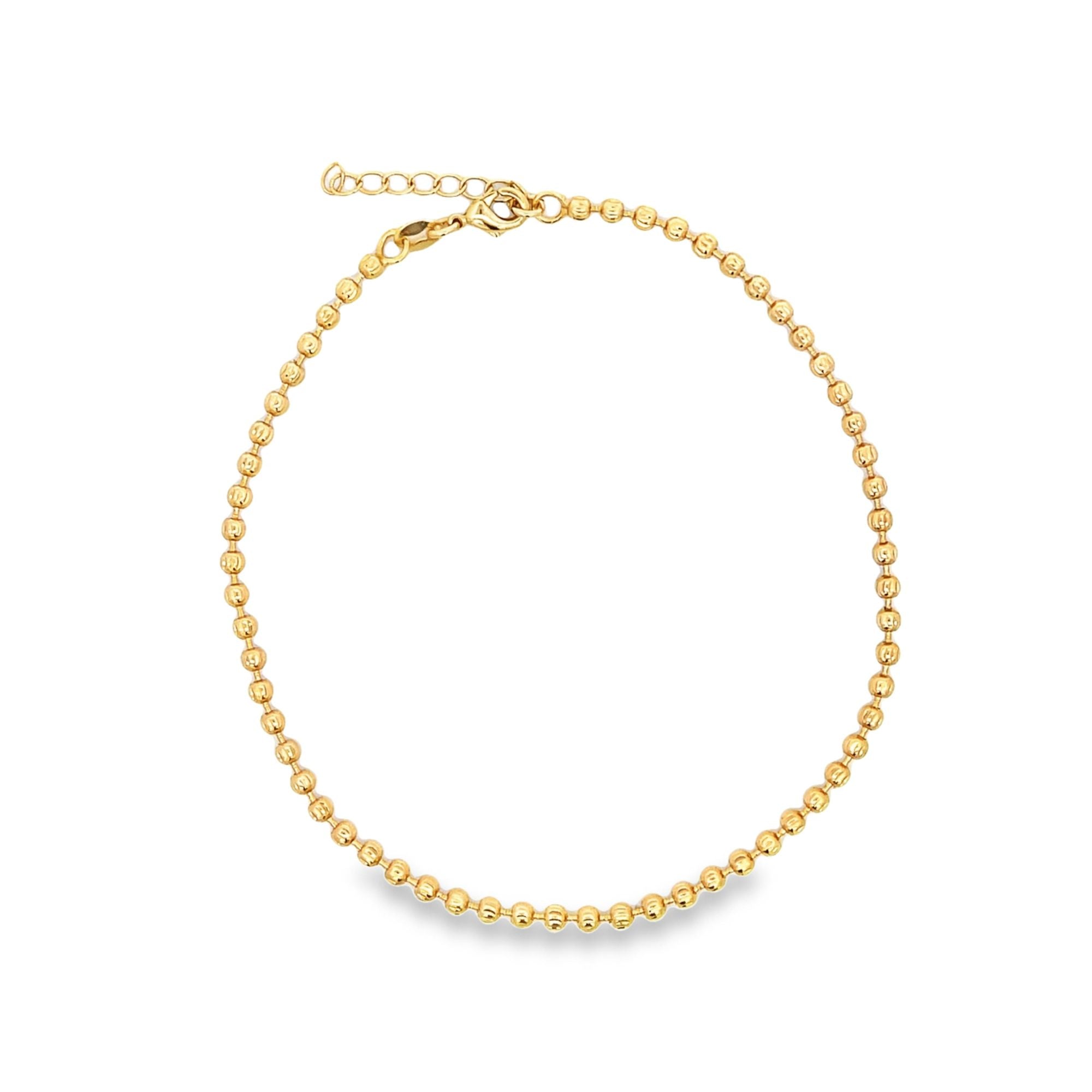 Add a touch of elegance and sophistication to your look with our 3mm Textured Ball Anklet. The delicate texture of the balls adds a subtle yet eye-catching detail to this accessory, perfect for any occasion. Elevate your style with this luxurious anklet.
