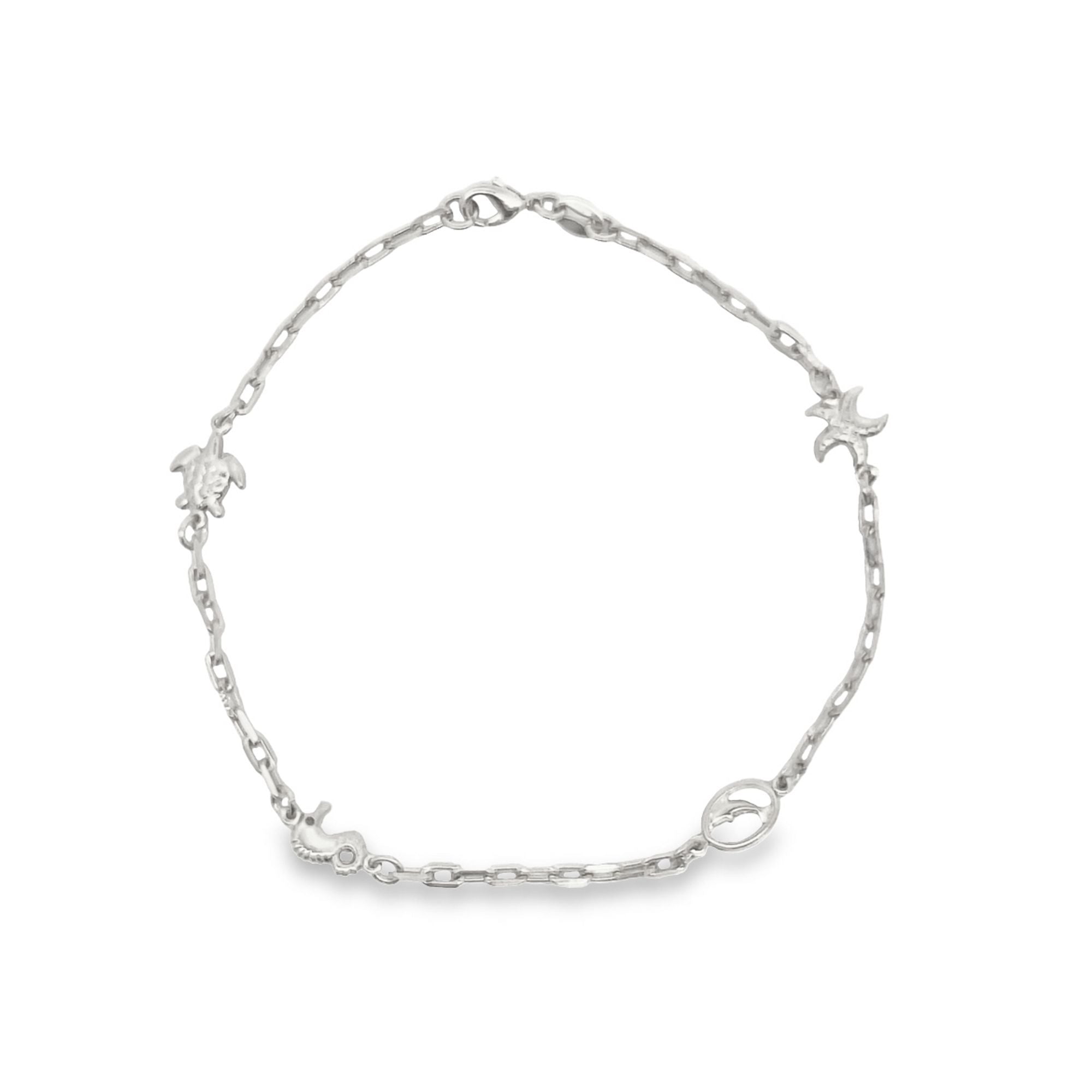 Dolphin, Turtle, Star Fish, Sea Horse Charm Anklet (E25)