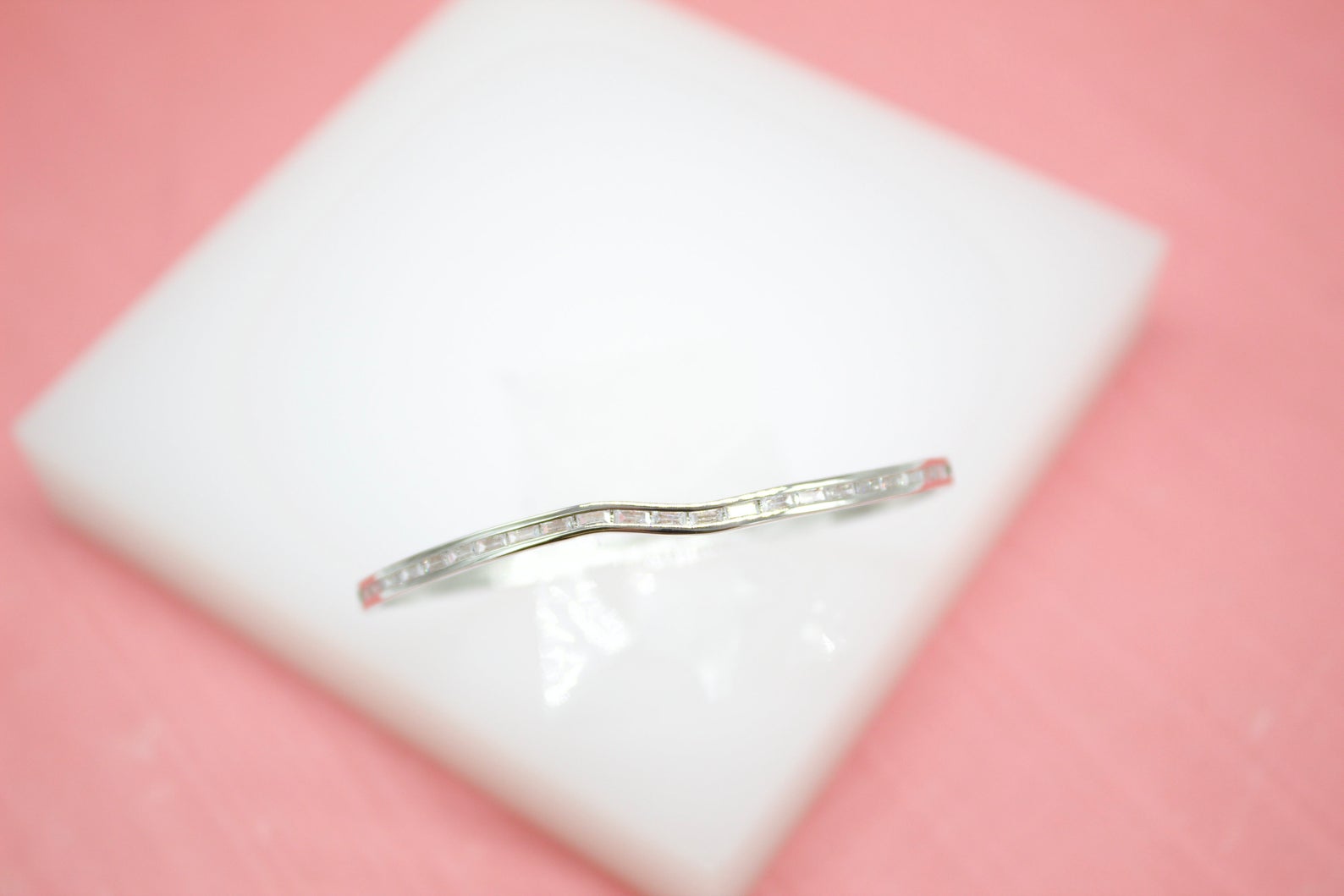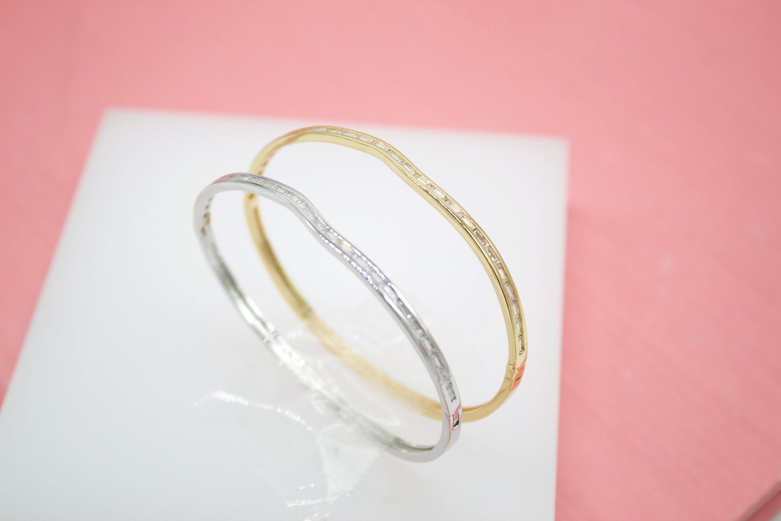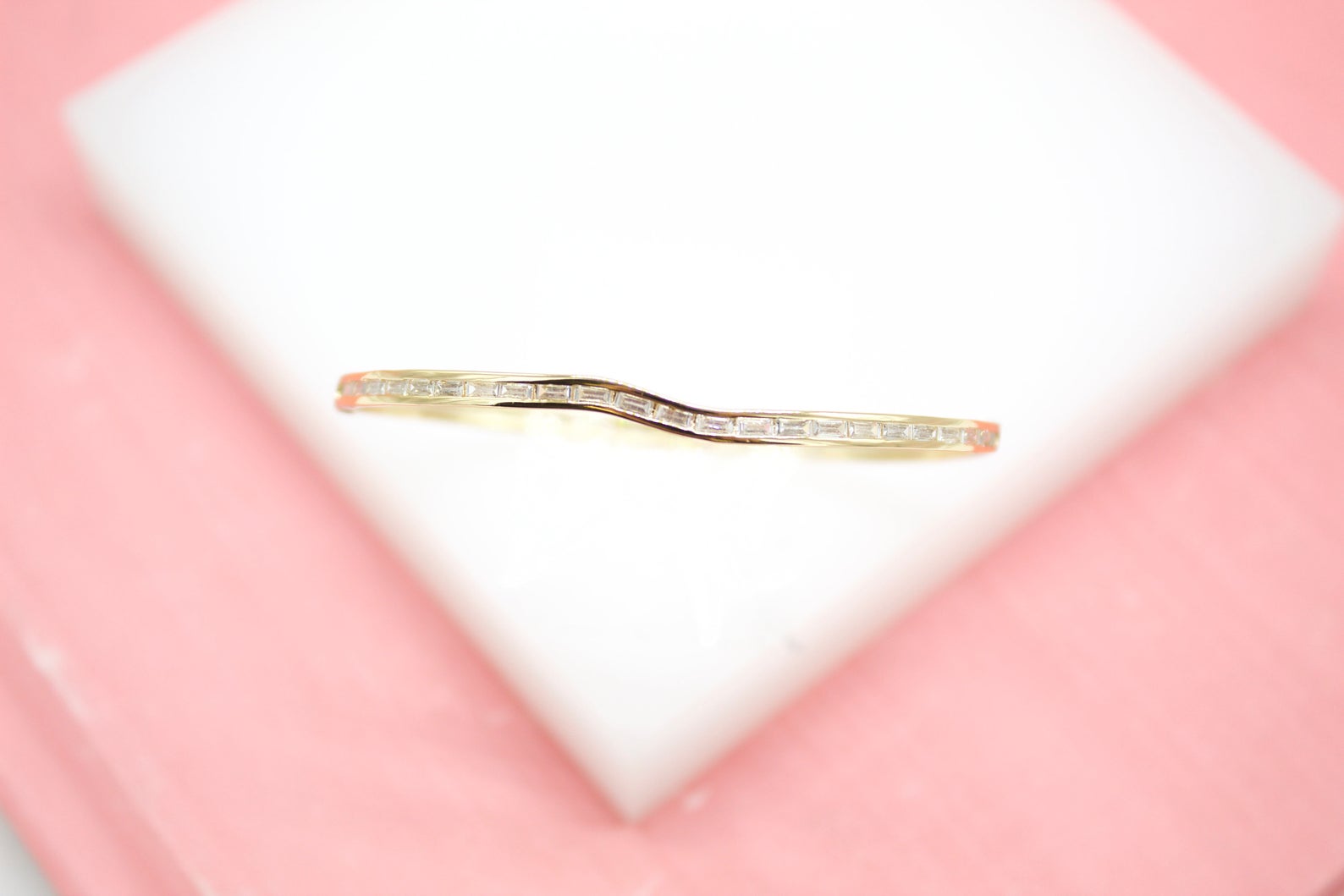 18K Gold Filled Slim Rectangle CZ Stone Bangle Bracelet (B19)