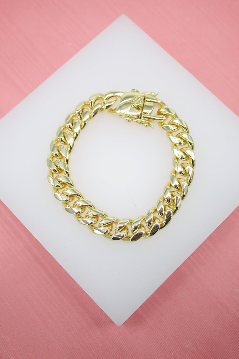 Elevate your style with our 10mm thick curb Cuban bracelet. Crafted with precision and polished to perfection, this bracelet exudes elegance and luxury. Perfect for both everyday wear and special occasions, it adds a touch of sophistication to any outfit. Embrace the finer things in life, with this exquisite piece.