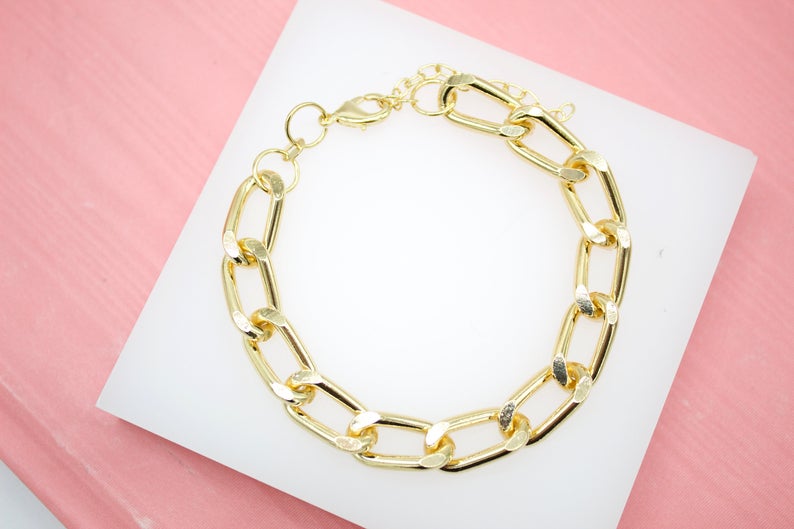18K Gold Filled 10mm Diamond-Cut Curb Cuban Link Bracelet Chain (I240)